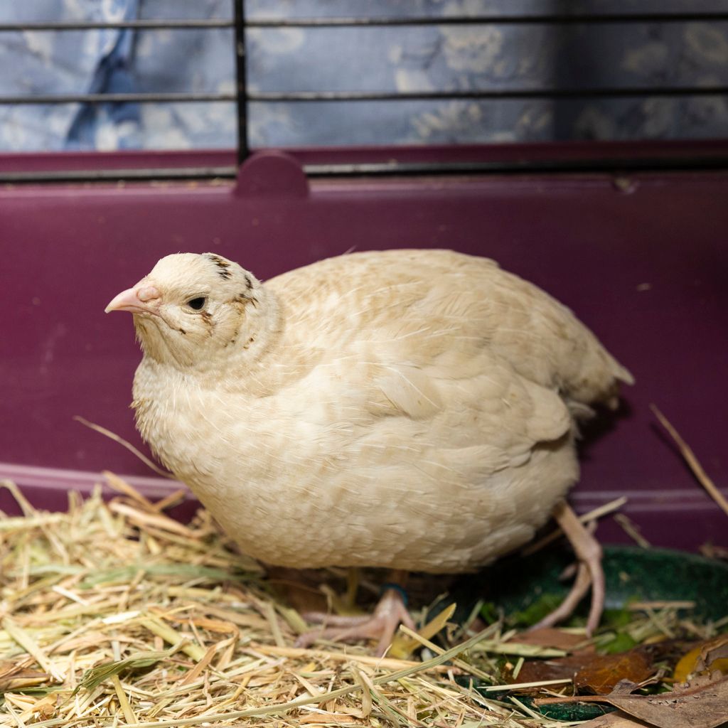 This little guy would thrive in a safe, predator-proof enclosure with plenty of space to forage and explore. He’s hoping to join a group of quails where he can chirp, scratch, and enjoy the company of his fellow birds.