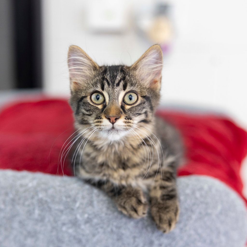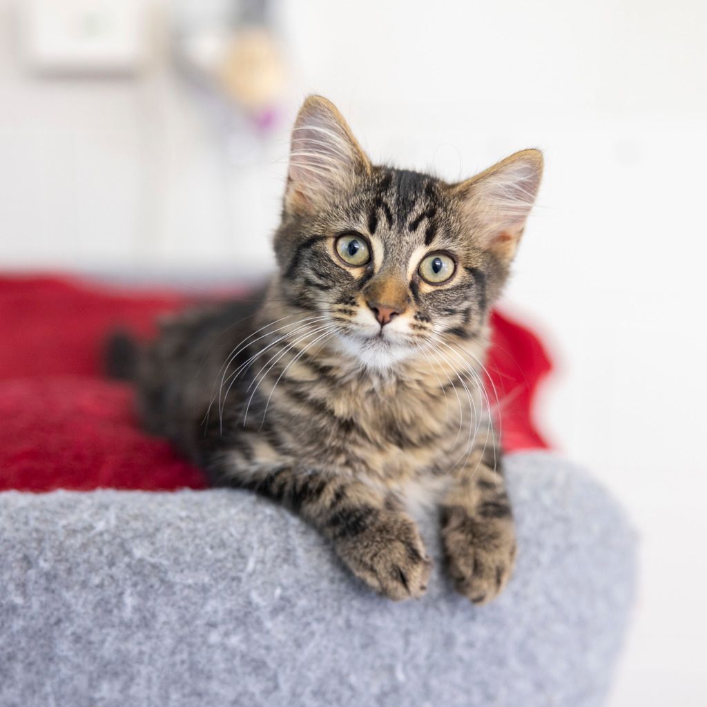Hi there, I’m Bloop. Aren’t I just the sweetest little thing?! I hope you understand that I’m going to grow up to be cat soon, and cats can live 20 years on average, so I’ll be looking forward to sharing a long and happy life full of love and laughter with you. I have no idea what I want to be when I grow up just yet, so maybe you could help me decide. I’m too young and full of energy to know if I’m going to be a smoocher or a player or a midnight meower. I’m just concentrating on being the fun ball of fluff I am right now. Please take me home and help me become the best version of myself that I can be.