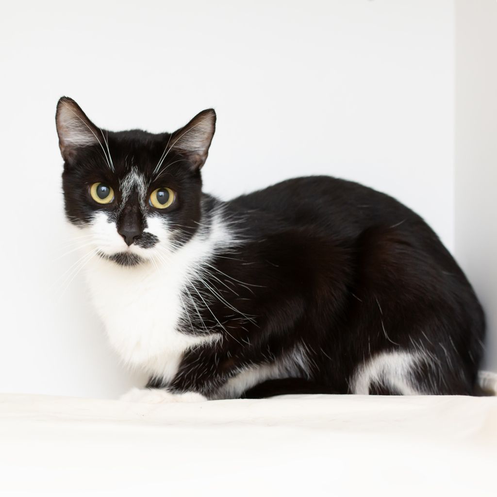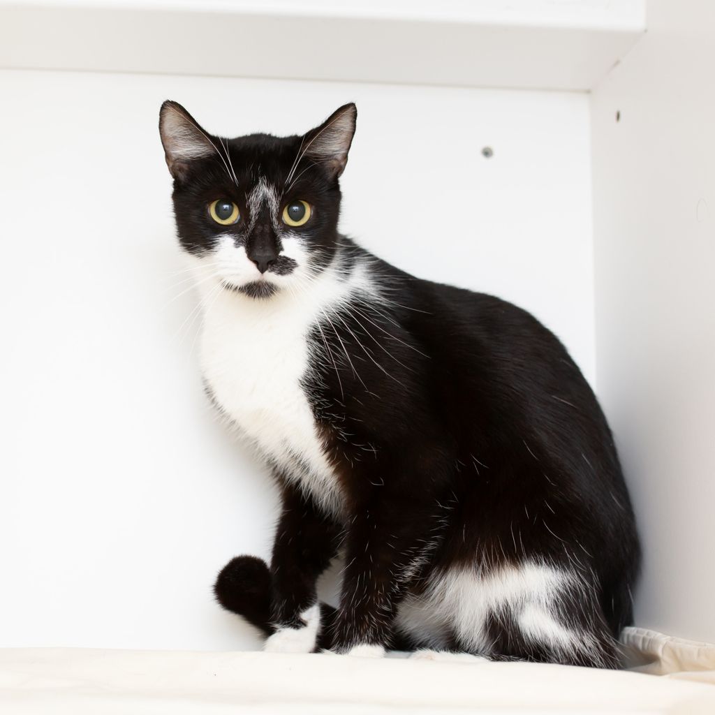 Say hello to Chloe, a beautiful black and white kitty with a quiet charm and a heart full of love – once you earn it! Chloe may be a little shy when she first meets you, but with patience and a gentle approach, she blossoms into a sweet and affectionate companion.