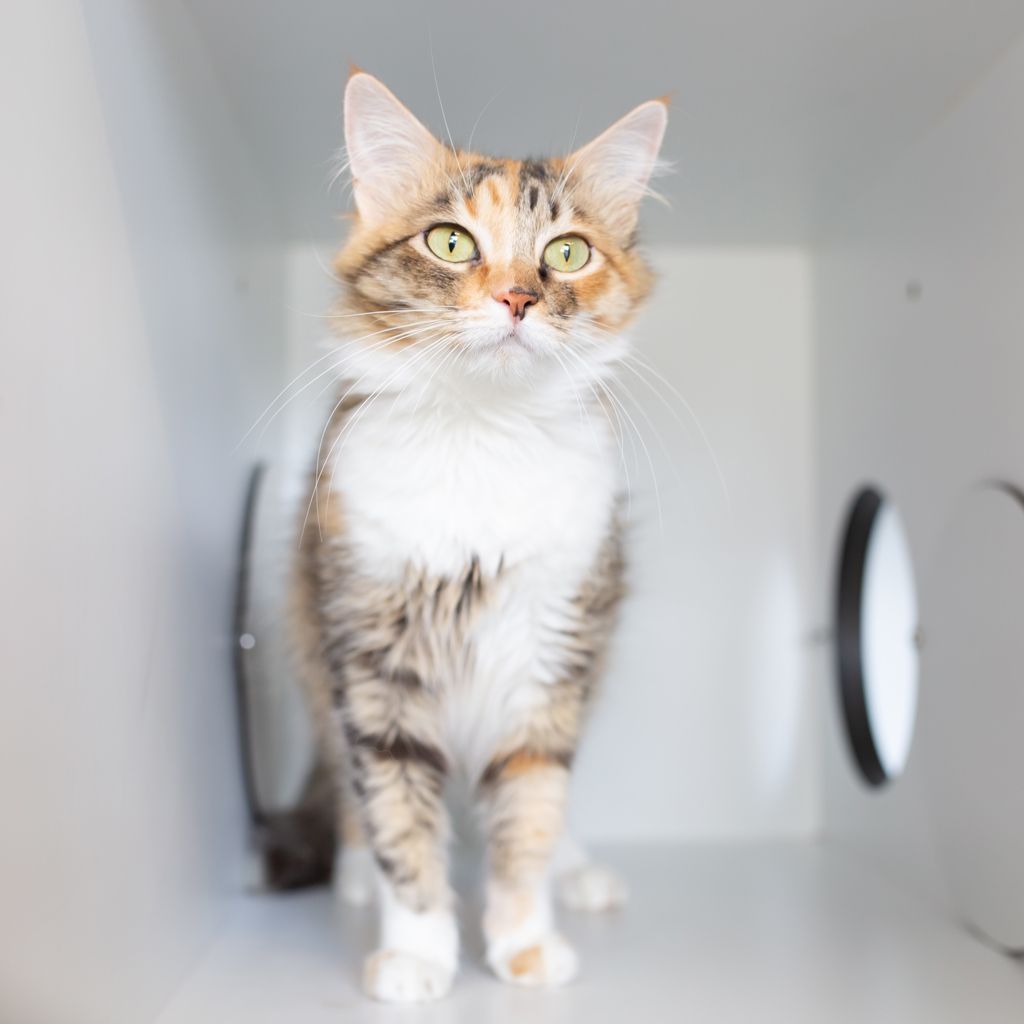 Halo gets along well with other cats and may chase them when she’s feeling extra energetic, but it’s all in good fun-and her foster cats don’t mind her moments of “zoomy” enthusiasm. At night she loves to stretch out beside her human, settling in for long, cozy sleep sessions.