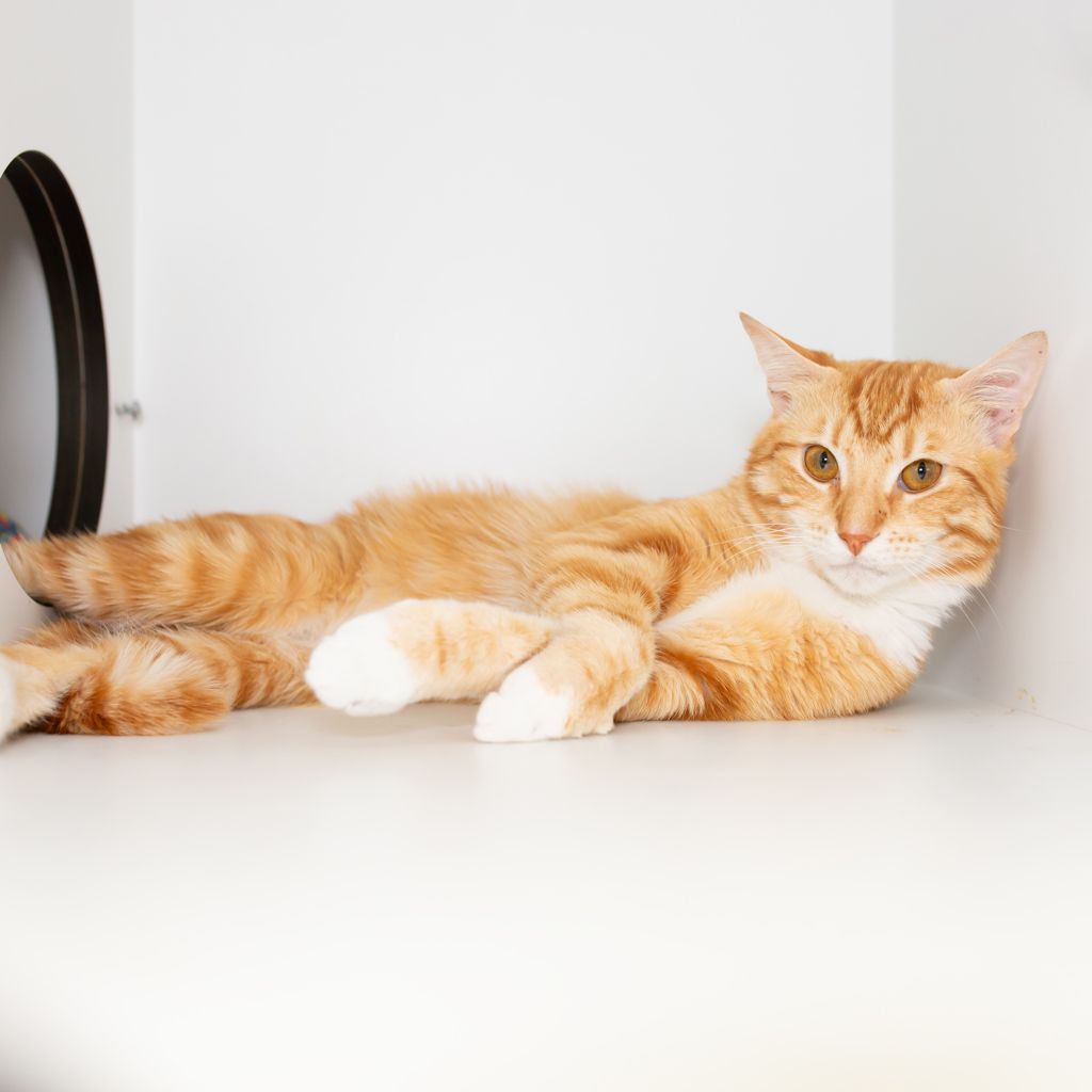 OJ is a handsome orange-and-white tabby with a big personality and an even bigger heart. This friendly boy loves attention and is always happy to greet you with a soft meow and a hopeful gaze-especially when it’s mealtime! π½οΈ He has a great appetite and enjoys the finer things in feline dining.