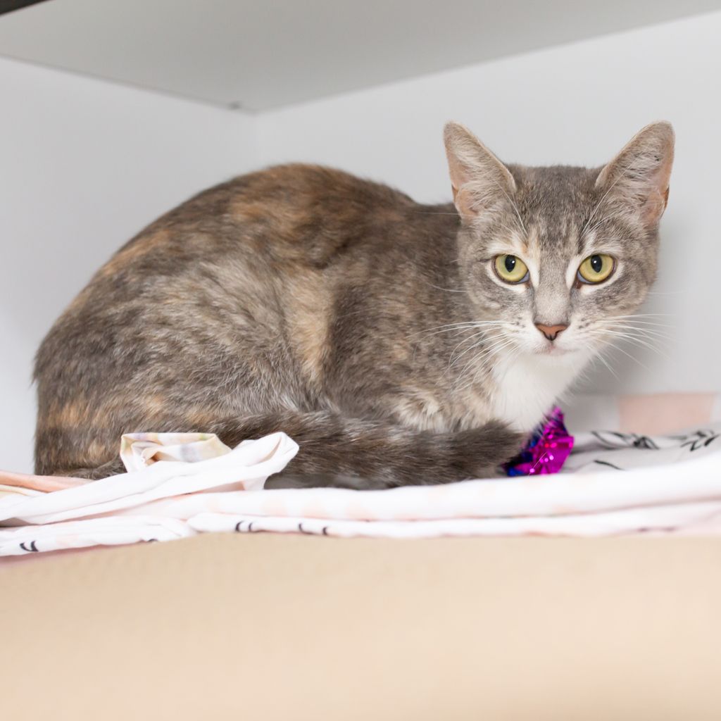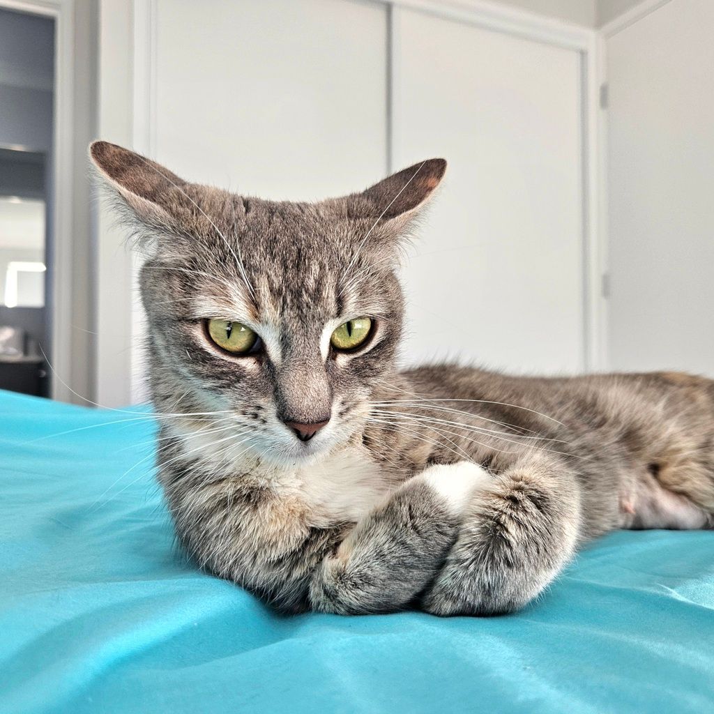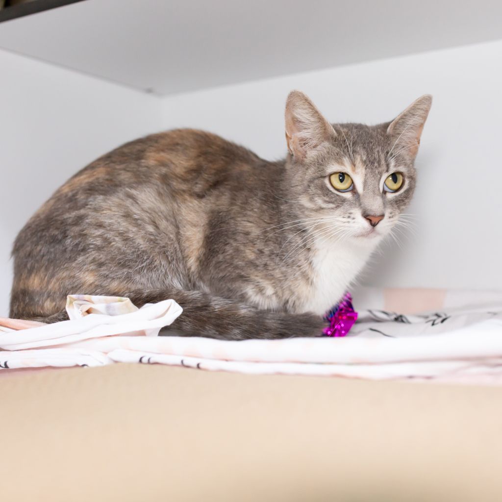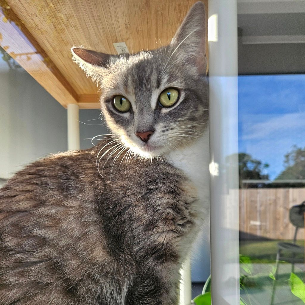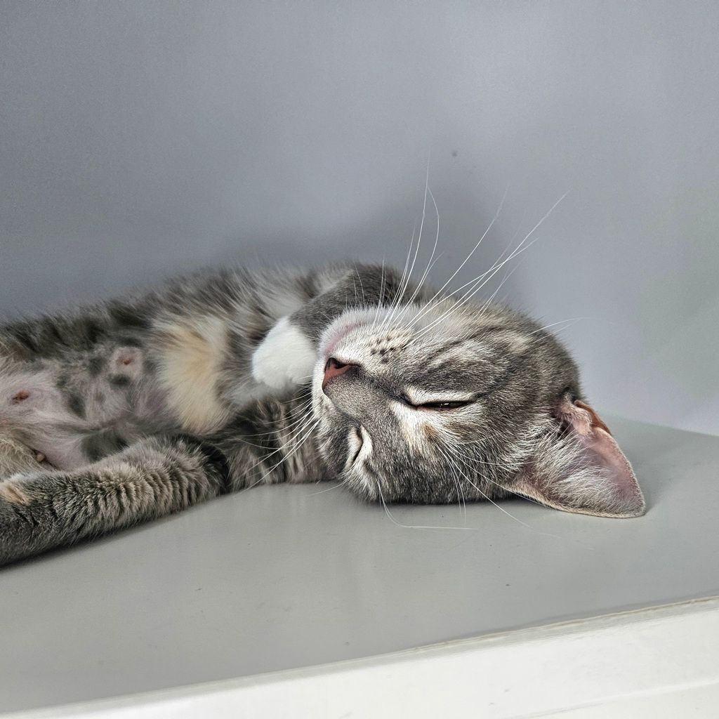 Nutella is a curious, busy little lady looking for a home where she can claim a sunny window and keep an eye on the world outside. She loves to watch birds, people, and anything else that moves-prime entertainment for her! When she’s not on window duty, Nutella will keep you entertained with her playful energy and adorable chatter. She’s a talker, a mover, and always ready for her next activity. This girl thrives when she has toys, playtime, and things to do, so she’d be perfect for someone who enjoys an interactive, lively cat. If you’re looking for a companion who’s equal parts observer, entertainer, and conversationalist, Nutella might be your match. π