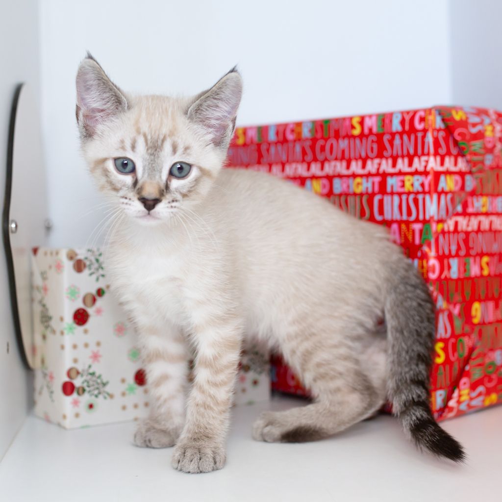 Gregory is a tiny bundle of charm wrapped in soft fur and big, curious eyes. This adorable kitten has a gentle personality that shines the moment he greets you with his quiet purrs. Whether he’s batting at a toy, curling up in a sunny spot, or following you around the house like your little shadow, Gregory brings joy wherever he goes.