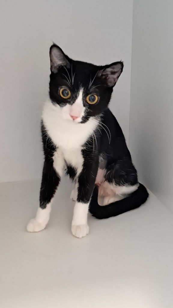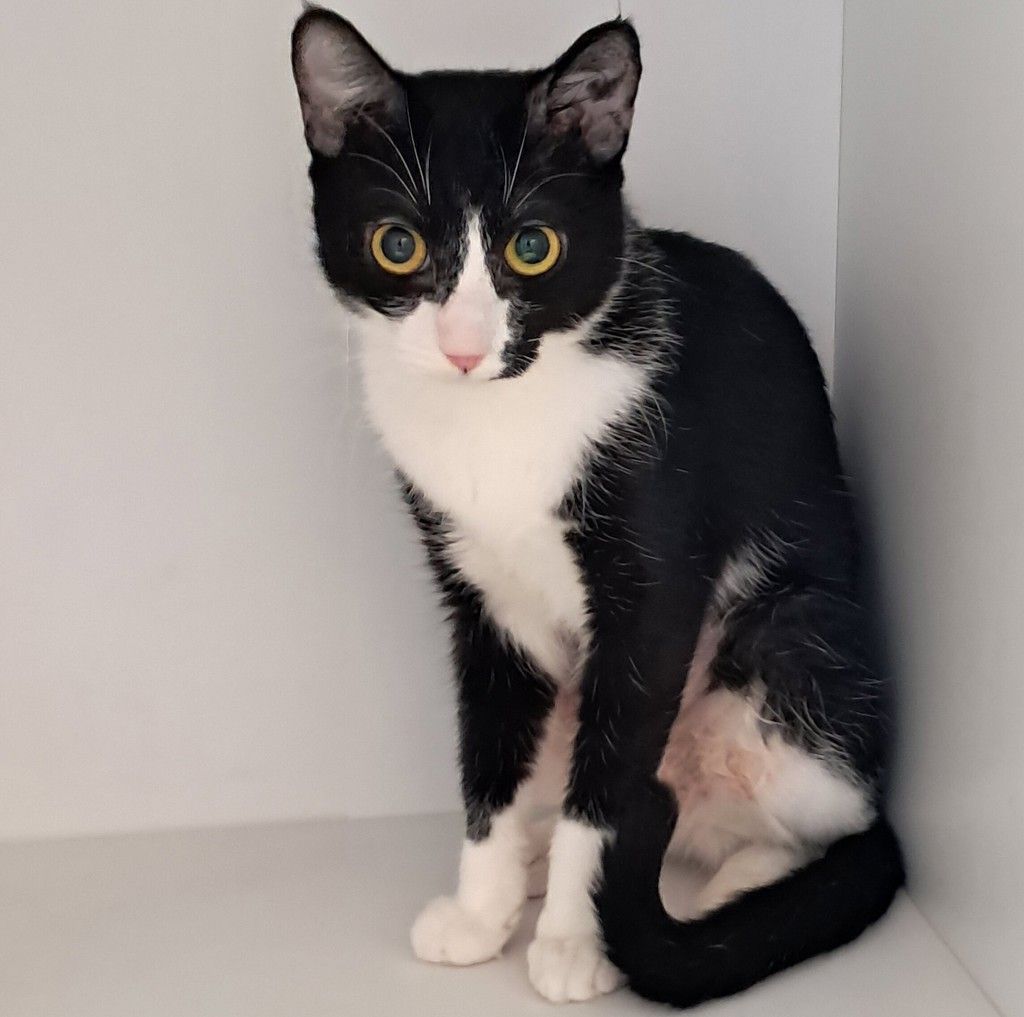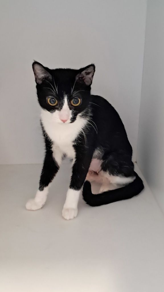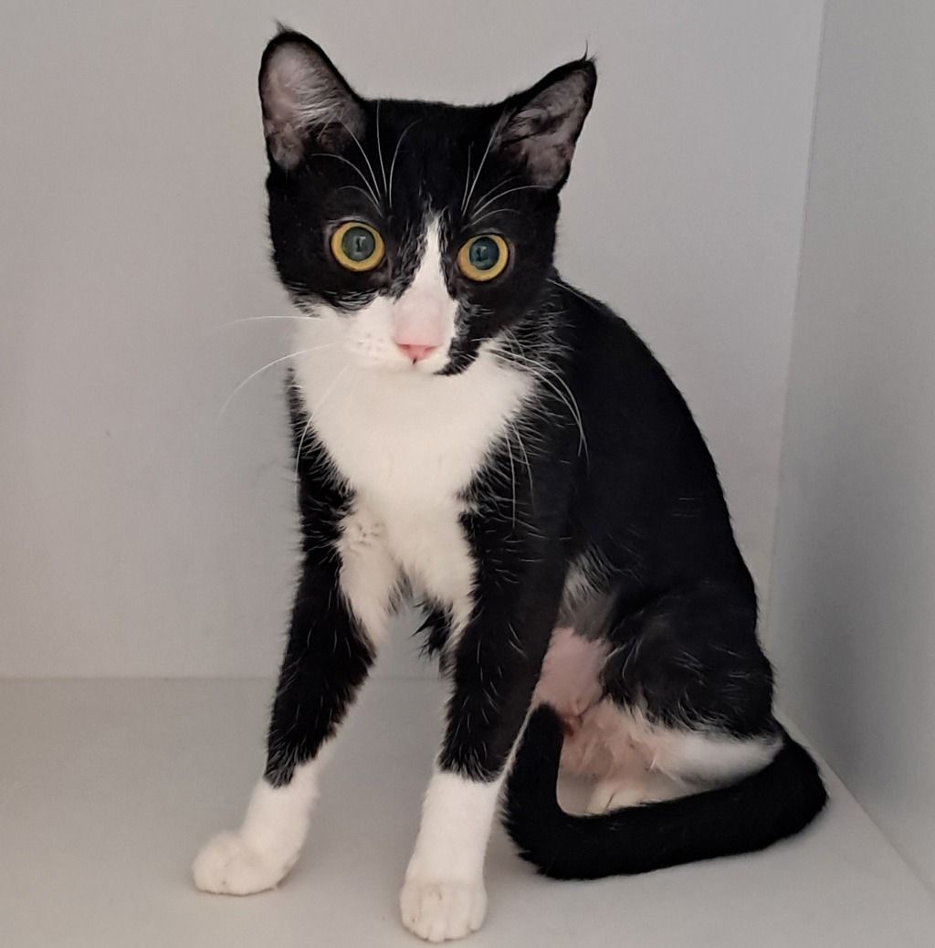 This sweet girl is the perfect blend of sass and snuggles, and she’s more than ready to join a family who appreciates her stylish tuxedo, clever antics, and heart-melting purrs.