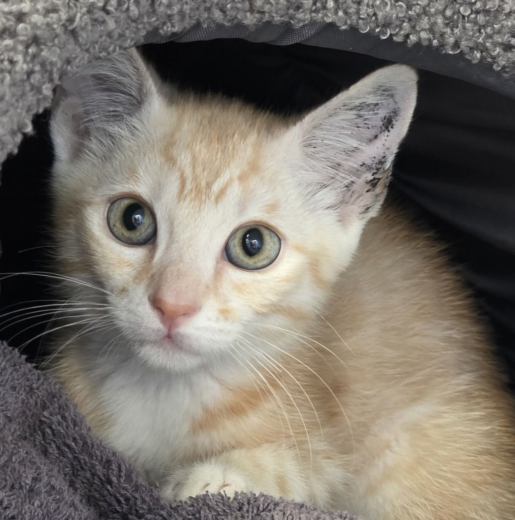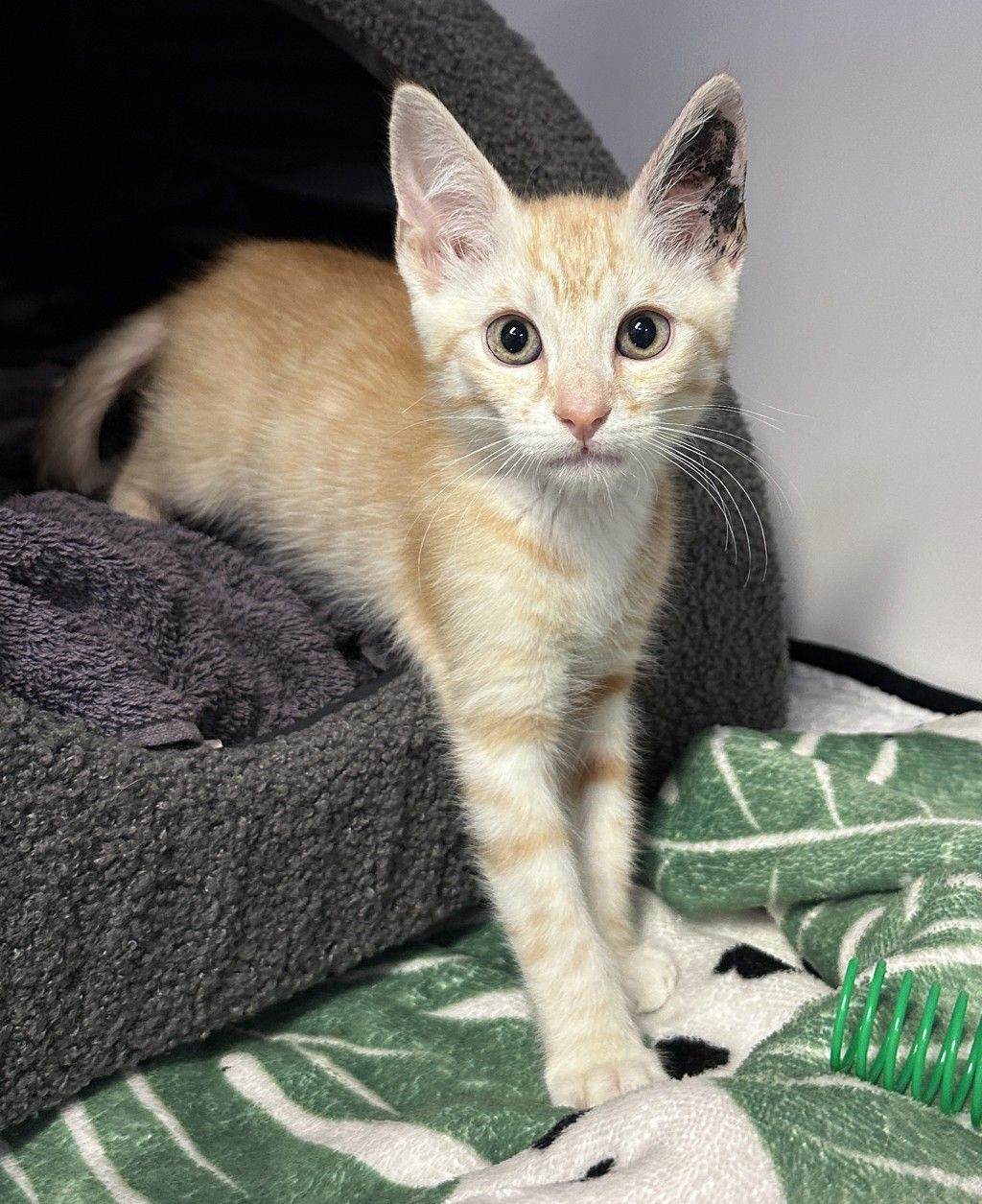 Jamie is a shy but sweet little kitten with a gentle heart and a quiet charm. He may need a bit of time to feel comfortable, but once he does, his soft and loving personality begins to shine. Jamie prefers a calm, peaceful environment where he can observe the world at his own pace and feel safe.