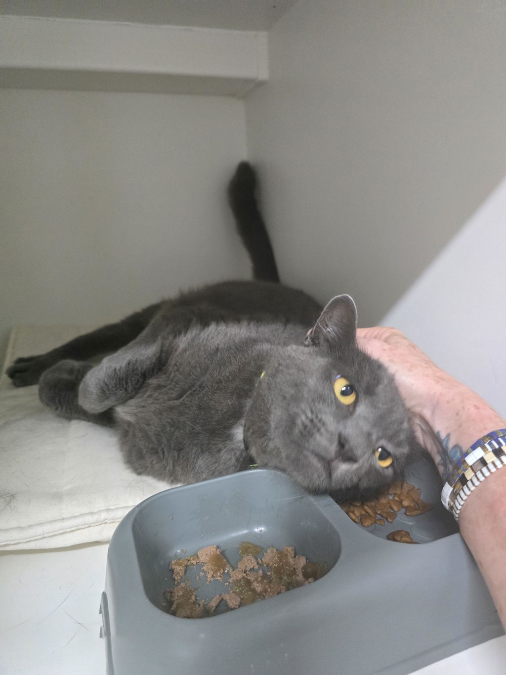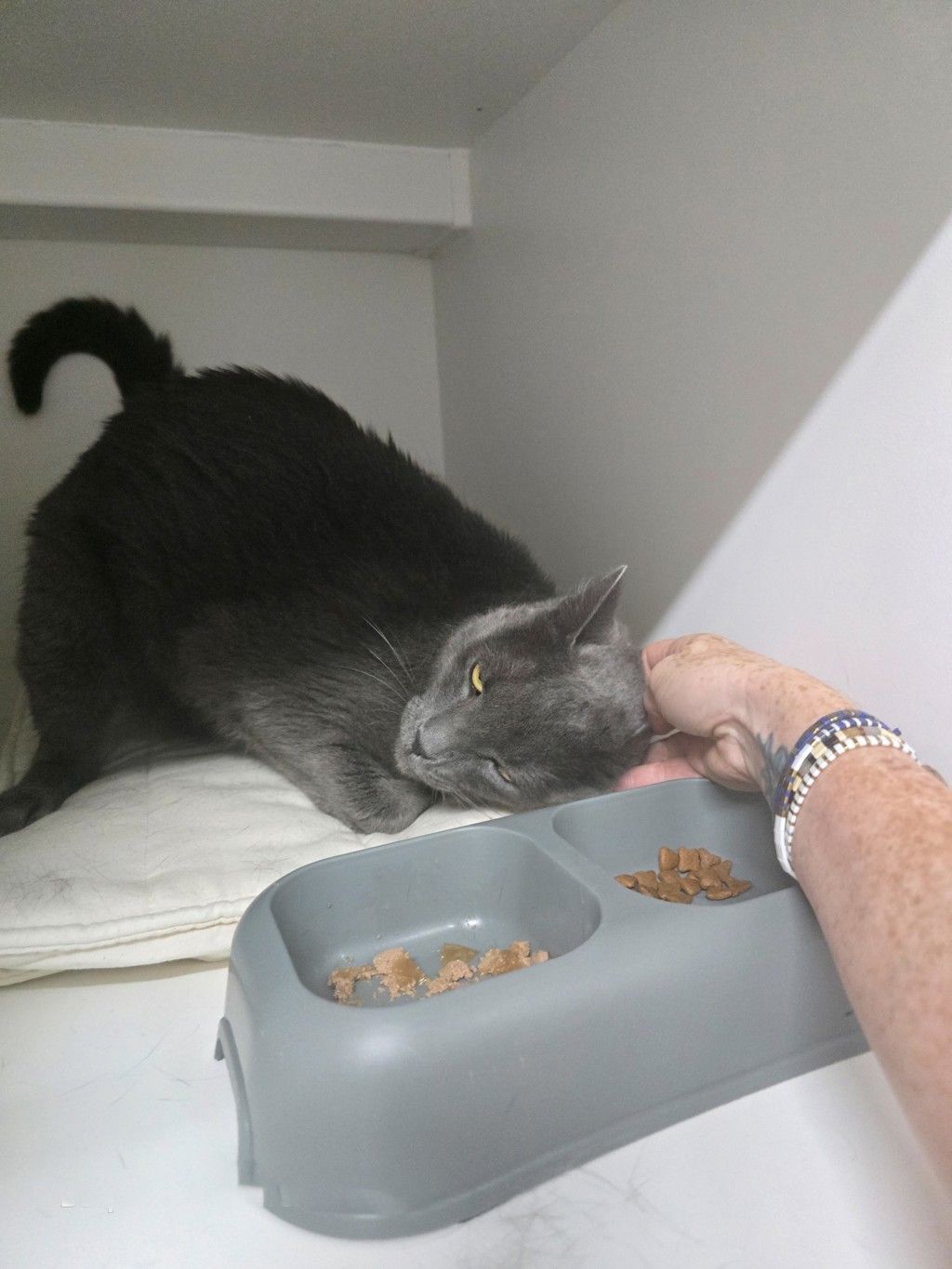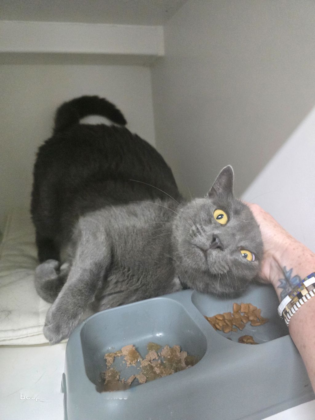 In the right home – calm, predictable, and adult-only – Grey truly shines. He’s not a fan of chaos or young children, but give him a peaceful space and time to settle, and you’ll see his softer side emerge. Once trust is built, Grey absolutely melts for a good chin scratch and will happily soak up affection on his own terms.