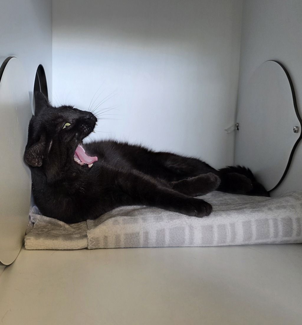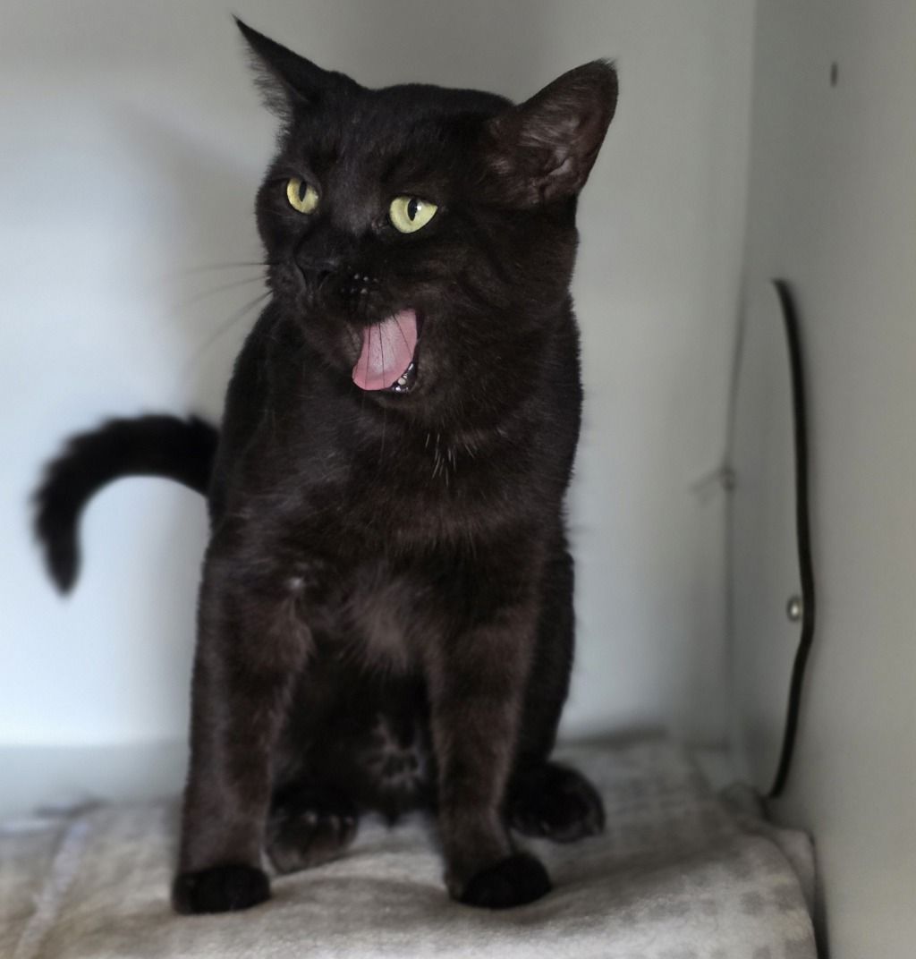 Merrow is a mature black cat with opinions-and he’s not shy about sharing them. He’s chatty, expressive, and full of attitude in the most entertaining way. If you’re looking for a cat who will comment on your life choices, your schedule, and the state of his food bowl, Merrow is your guy.