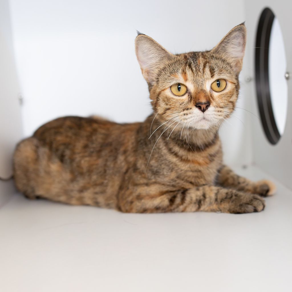Bella is a beautiful 1-year-old torbie who has lovingly raised her kittens and is now ready for a forever home of her very own. After being such a devoted mama, it’s finally her turn to be the baby.