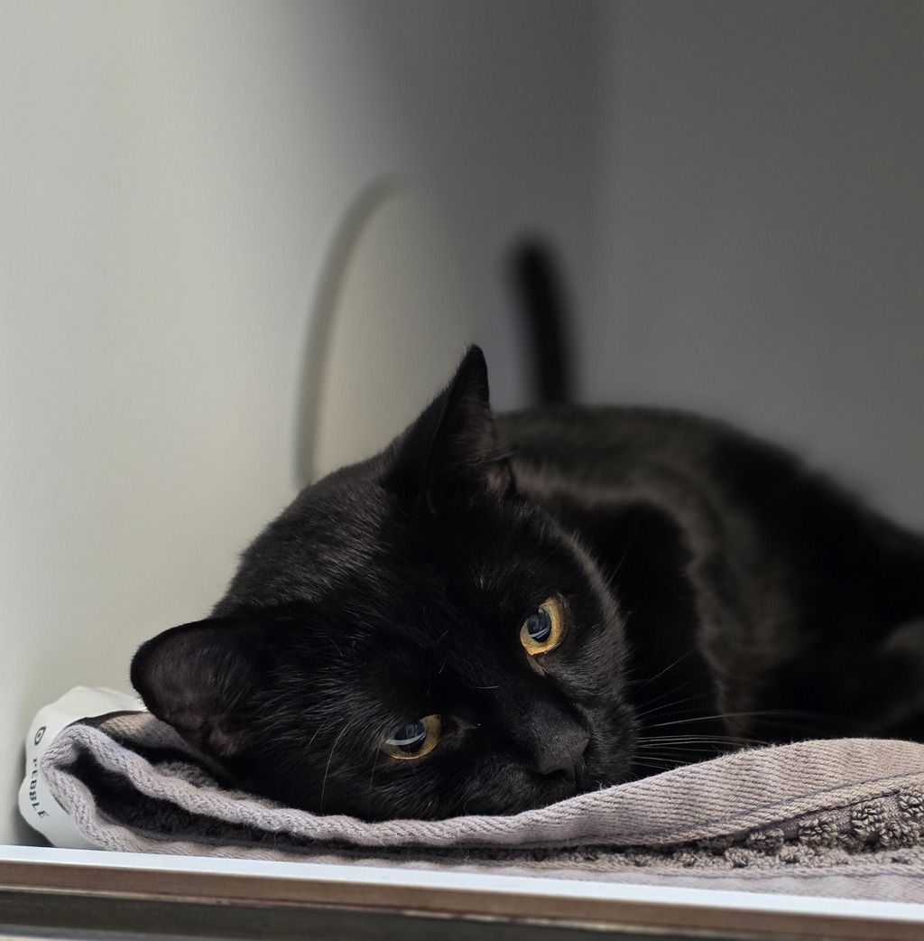 Sleek as a shadow and clever as his namesake, Crow is a handsome two-year-old black cat ready to soar into his forever home. This charming boy is as friendly as they come-always eager to perch by your side and keep you company with his gentle, affectionate nature.