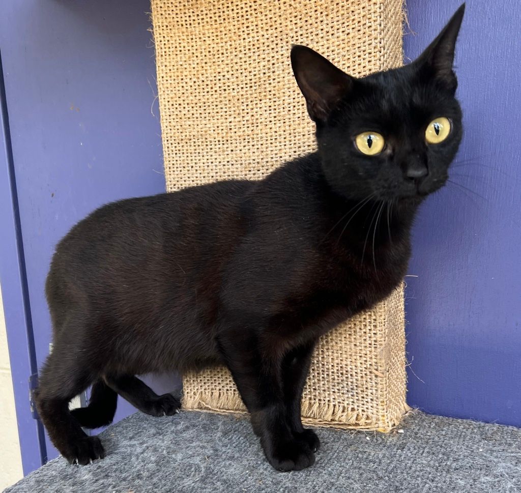 With a name inspired by a graceful jungle guardian, Bagheera is a stunning three-year-old black cat who carries herself with quiet elegance. Like a shadow moving through moonlight, she has a calm, watchful presence that makes her all the more captivating.