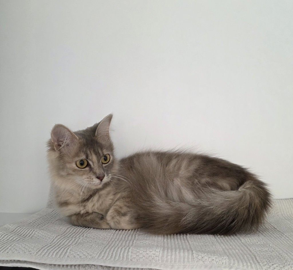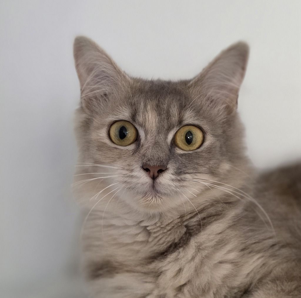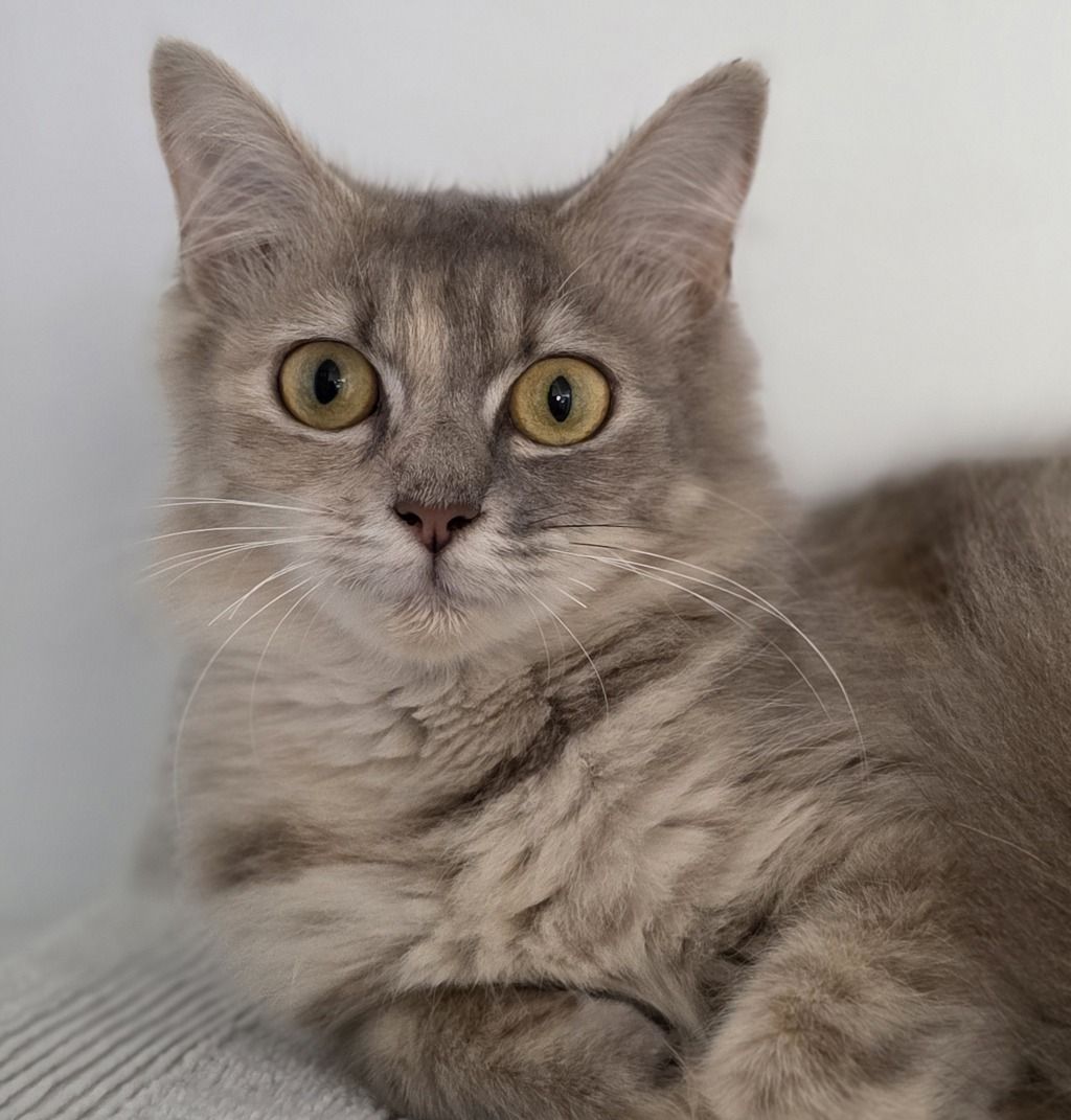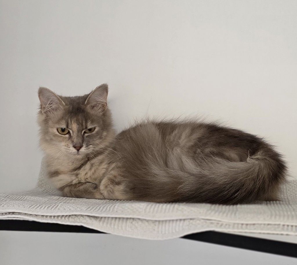 Melon is an 8-month-old blue cream calico with a coat as soft and dreamy as a pastel sunset-delicate swirls of colour that make her truly unforgettable. She’s a gentle soul at heart, a little shy at first, preferring to take her time and quietly figure out the world around her.