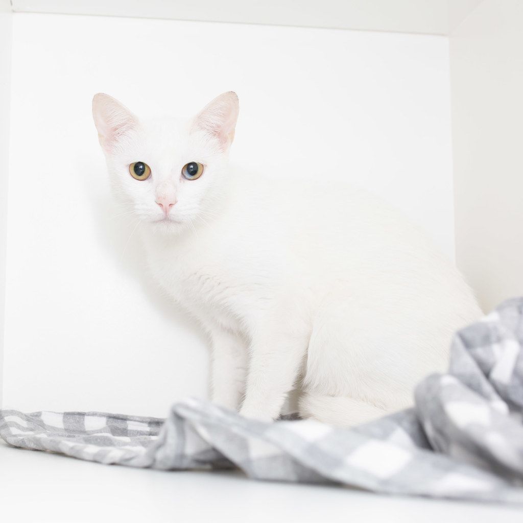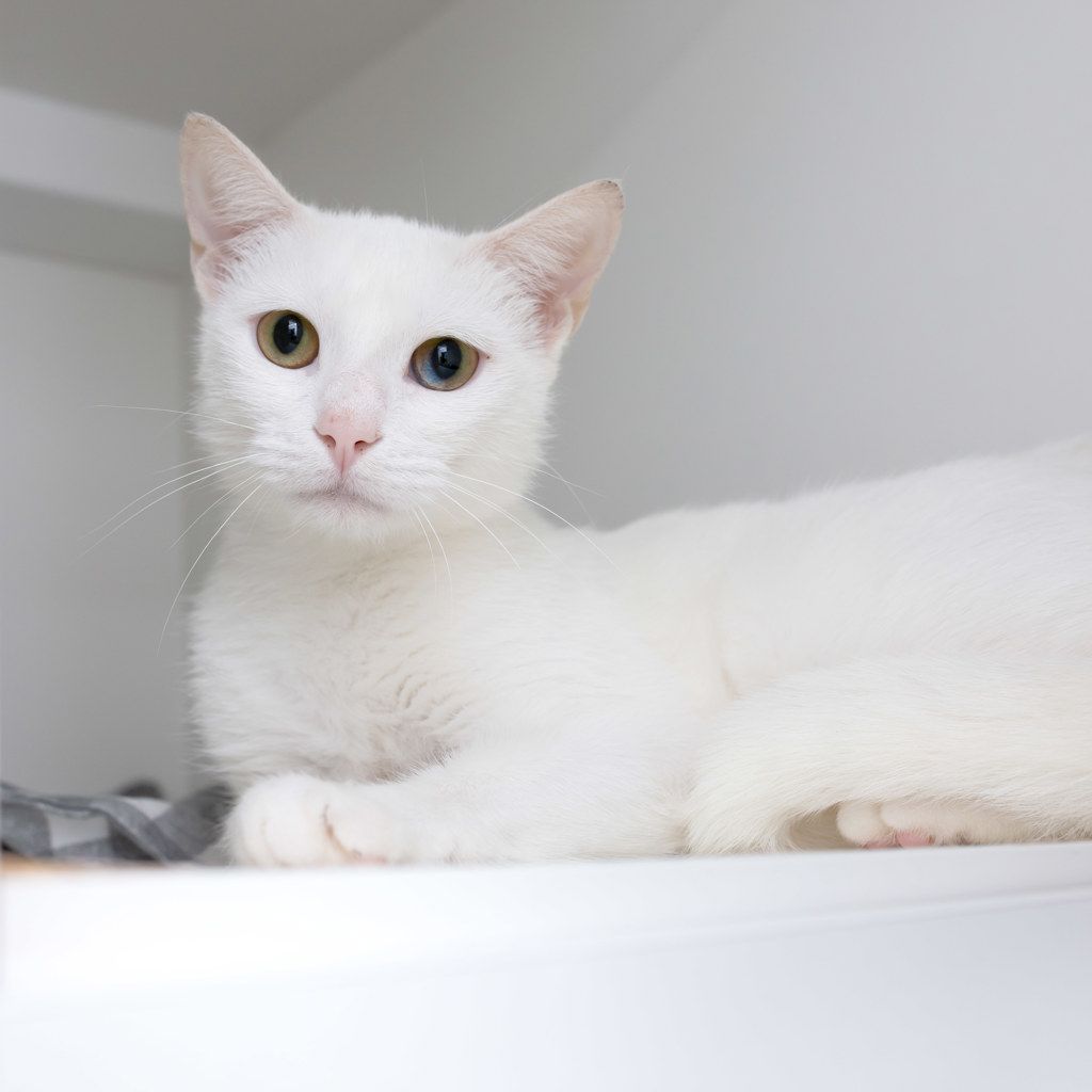 Sylveon is a stunning Bi eye cat one eye is blue and the other is green and just to make her even more special one eye is both of those colors. She is a white adorable girl that is ready to have a family and share her worldly knowledge. She is very straight forward in her approach to life so expect her to let you know what she wants and needs. Sylveon has so much to give and she is ready and willing to go home with you and make you the happiest person on earth. Please pop in and meet her today.