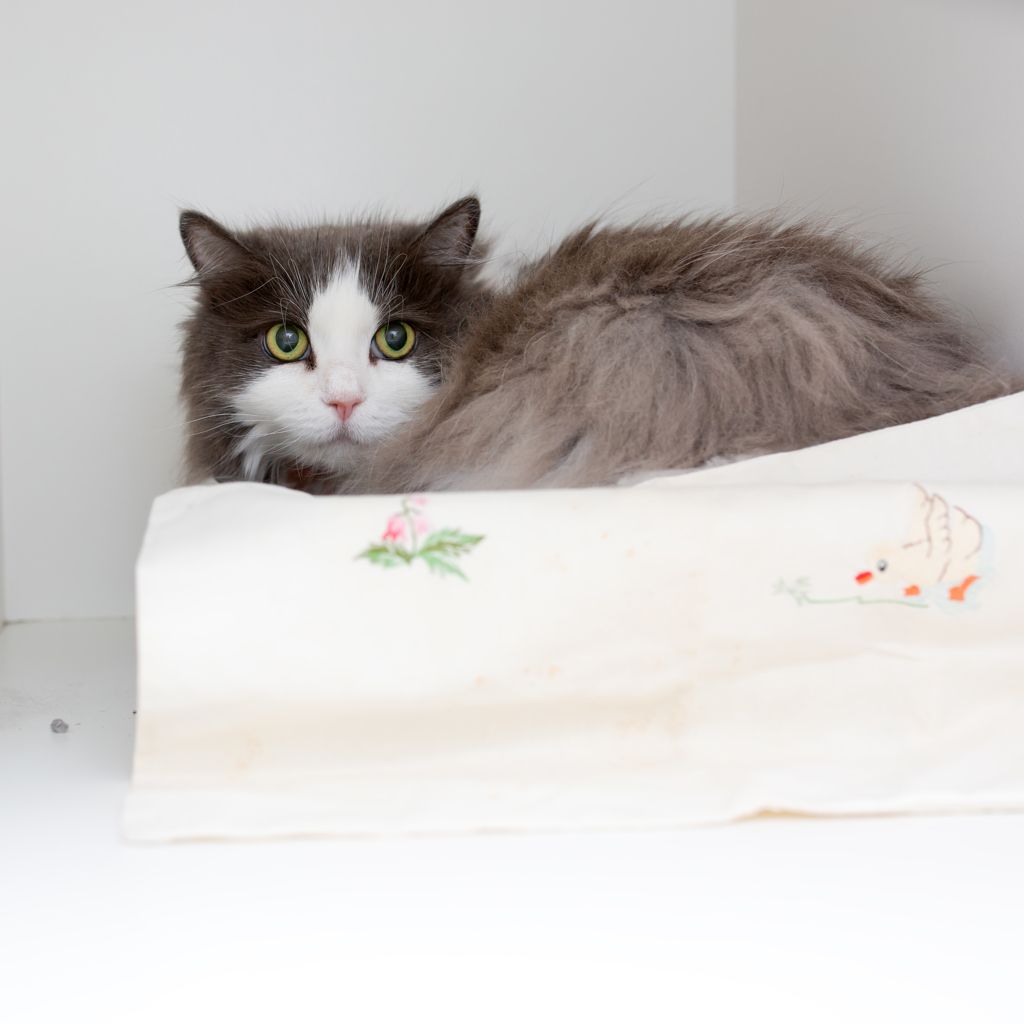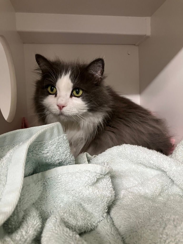 Despite losing a leg, Peg gets around just fine and enjoys cozy spots where she can relax and watch the world go by. She would thrive in a calm, quiet home with patient humans who can give her the time and space she needs to feel safe and loved.