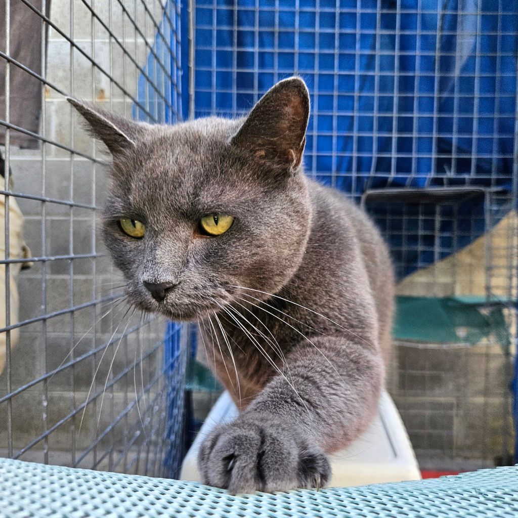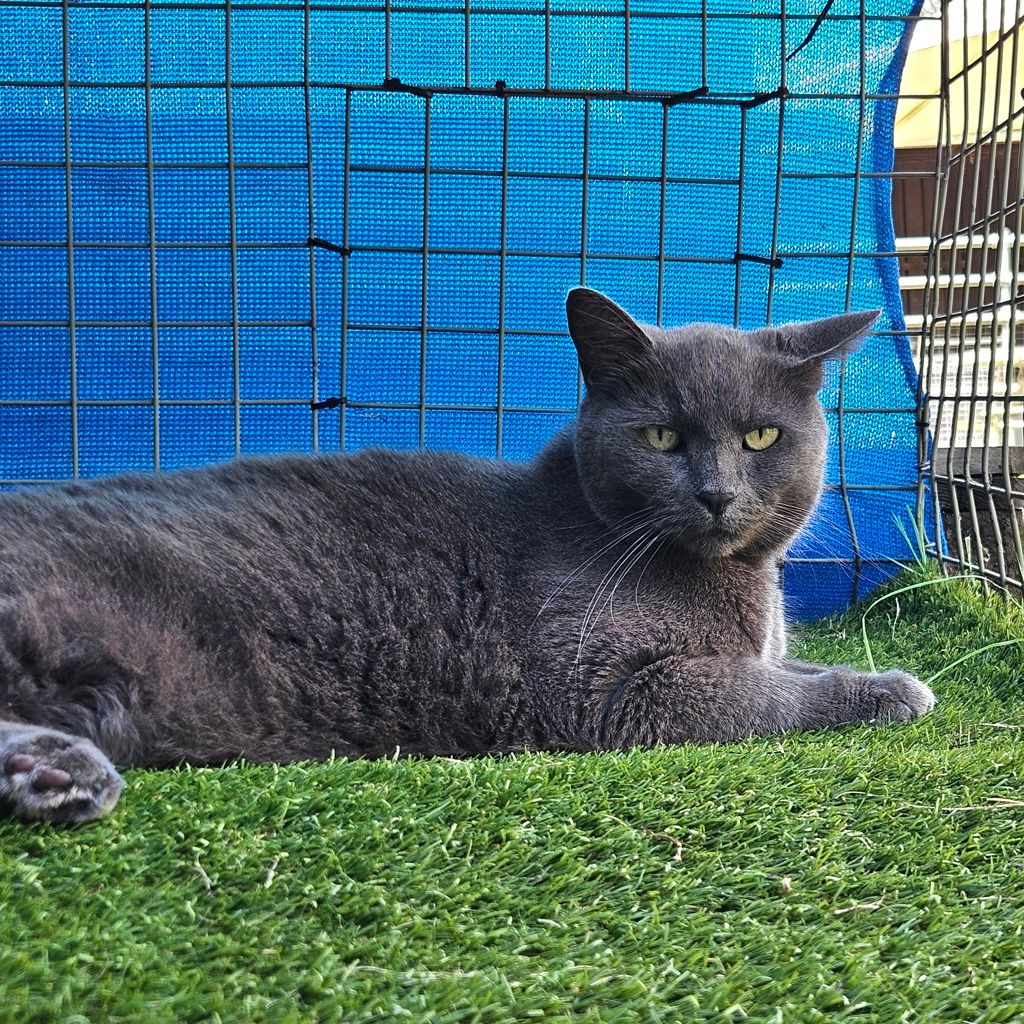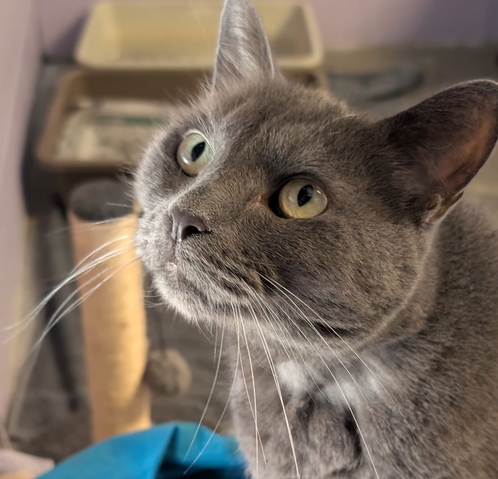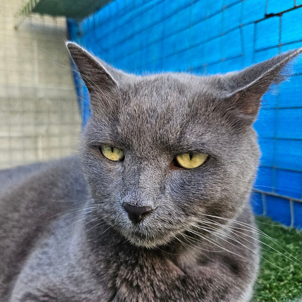 Shadow has lived a quiet life and hopes his second reign will be just that – calm, predictable, and full of cozy moments upon his favourite throne (preferably a plush bed or sunny windowsill). As the true Lord of the Greybeards, he carries himself with quiet dignity and a touch of royal presence. He would thrive in a serene home with a cat-savvy adopter who understands that the finest alliances are built on patience, respect, and the occasional gentle chin scratch.