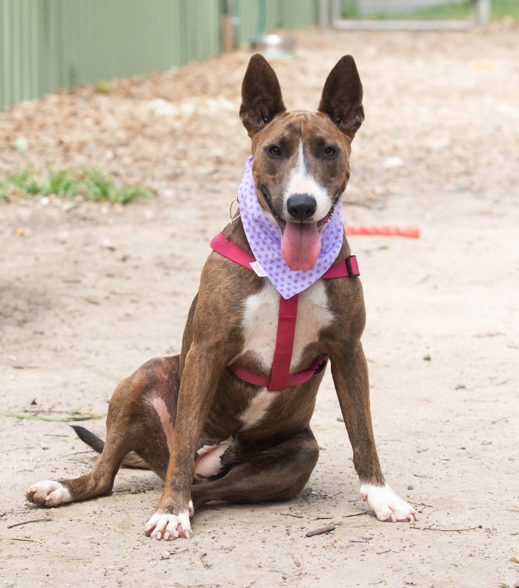 Hi, I’m Emilia! I’m a 2-year-old Bull Terrier with the perfect mix of love and brains ✨. I’m super smart and love learning new things, so I will suit someone who enjoys training and fun games! I love keeping my brain busy, so lots of mental enrichment will keep me happy. I get along with other dogs, but I can be a little boisterous in play if I get too excited, so please bring in any dogs you have at home so we can make sure we’ll be buddies 🐢.