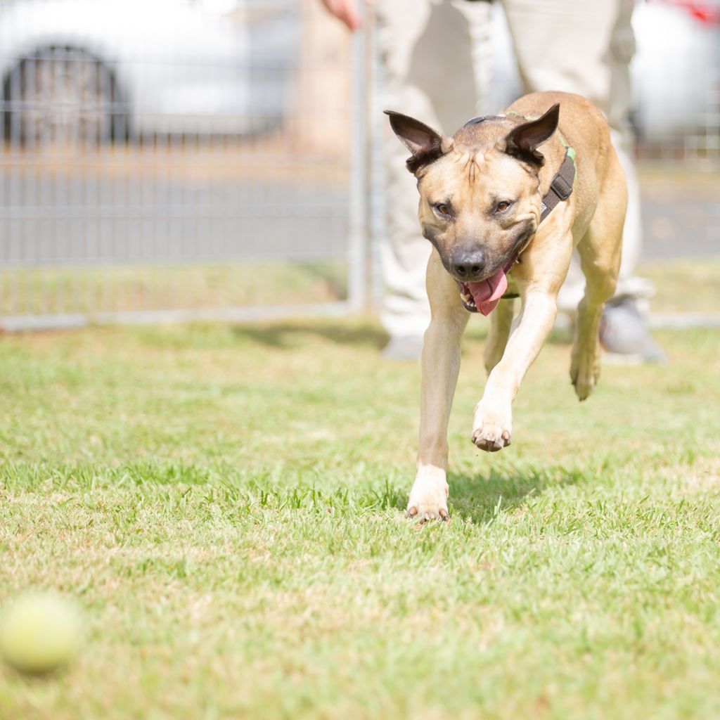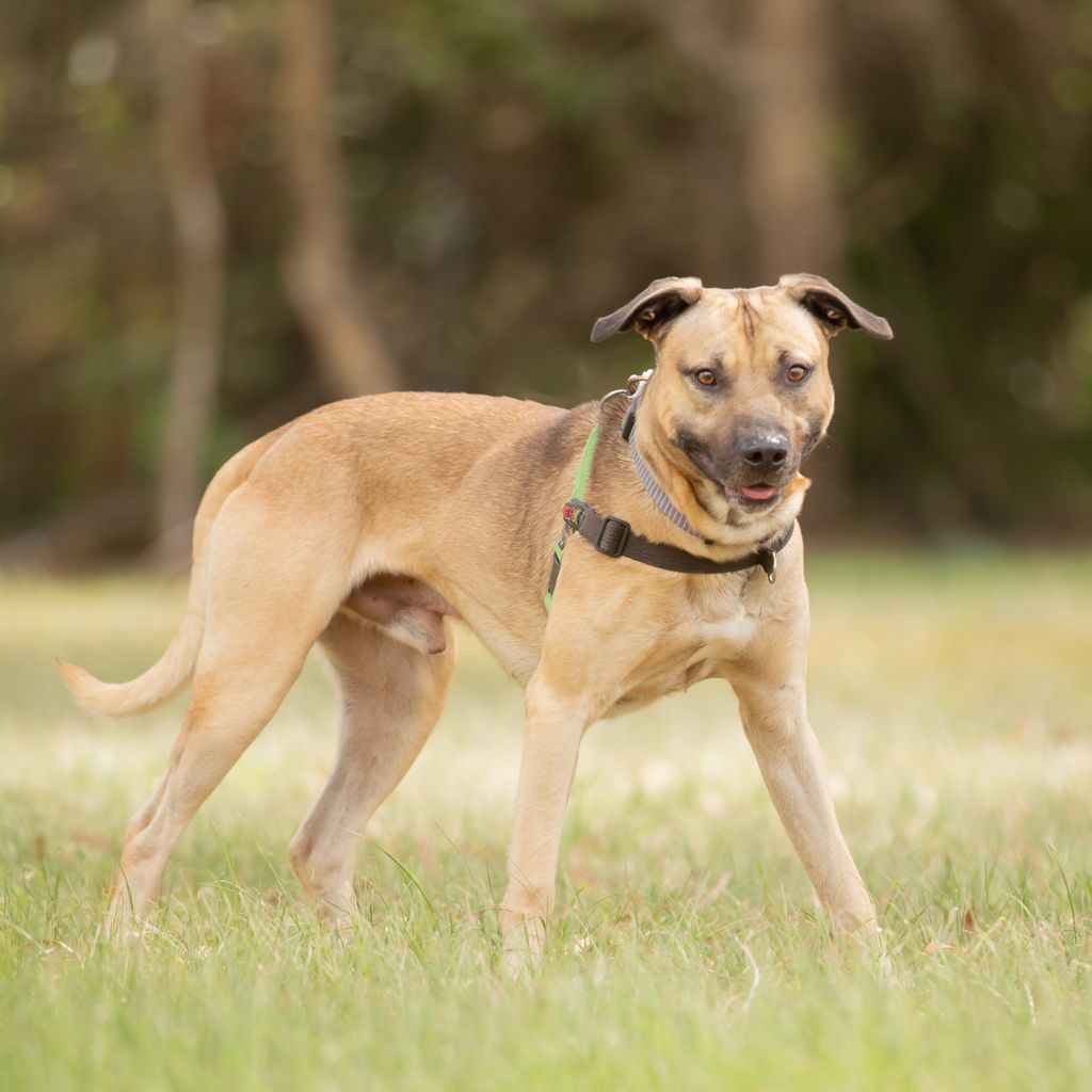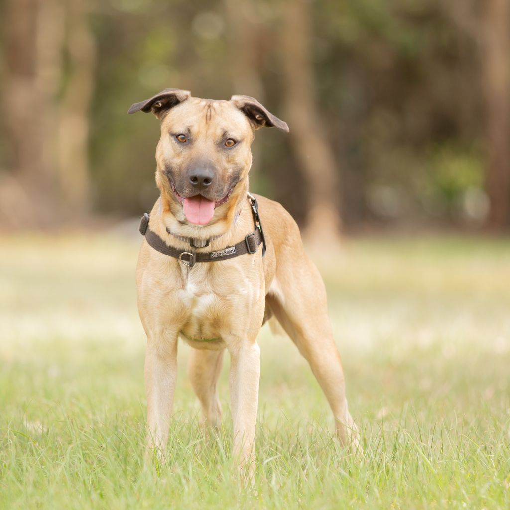 Meet Ash, a young and energetic American Staffy who’s always ready for his next adventure! This lively boy loves being part of the action – whether it’s hiking, exploring the beach, or joining in on family outings, Ash is happiest when he’s on the go with his people. He’s social and enjoys the company of other dogs, though his enthusiastic playstyle can sometimes be a bit much for quieter pups. Ash would be best matched with a playful dog who can keep up and help show him when it’s time to relax. He’s super food-motivated, which makes training both fun and rewarding, and he’s eager to keep learning as he grows. With a bit of guidance and plenty of love, Ash will make an amazing adventure buddy and a loyal companion for an active, outdoorsy family.