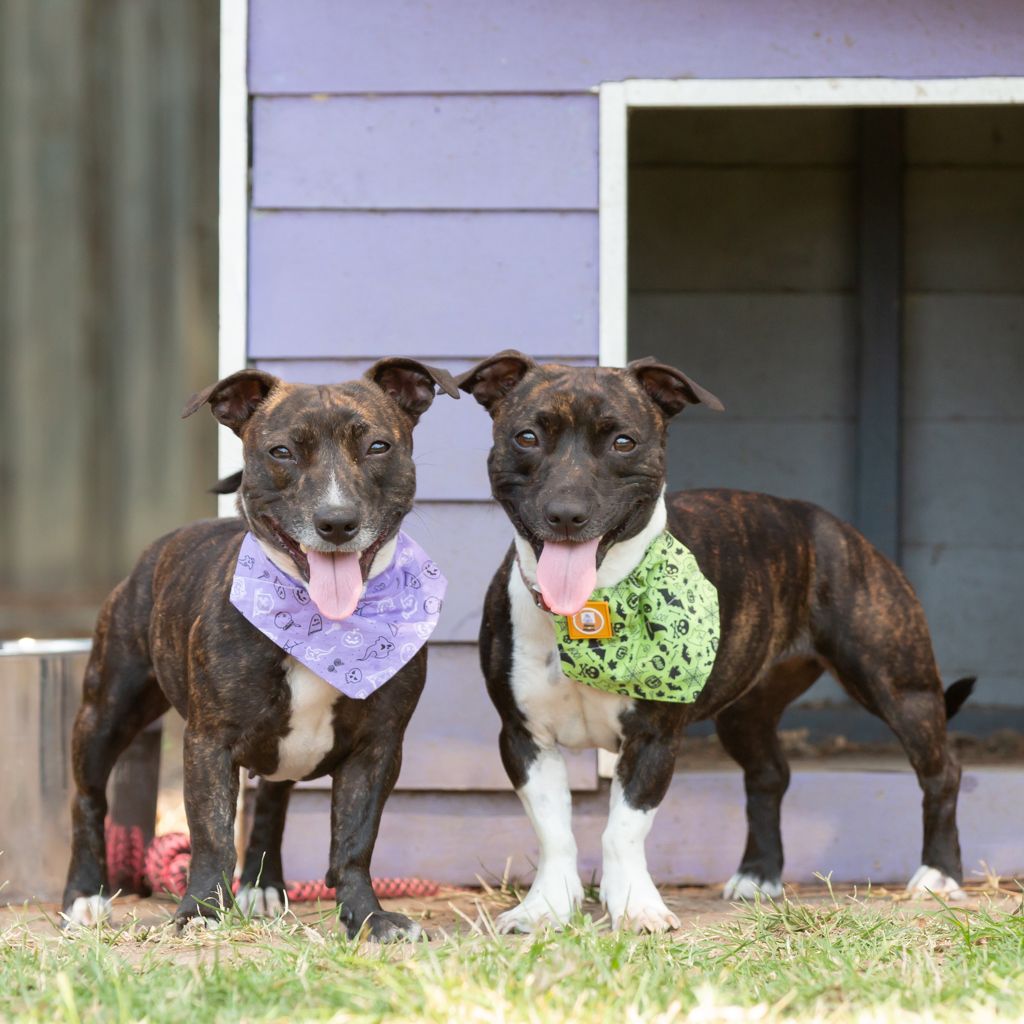 Meet MJ and Millie, an adorable sibling duo looking for their forever home together! These 1.5-year-old Staffordshire Bull Terrier / Jack Russell Terrier crosses are the perfect mix of playful energy and loving companionship.