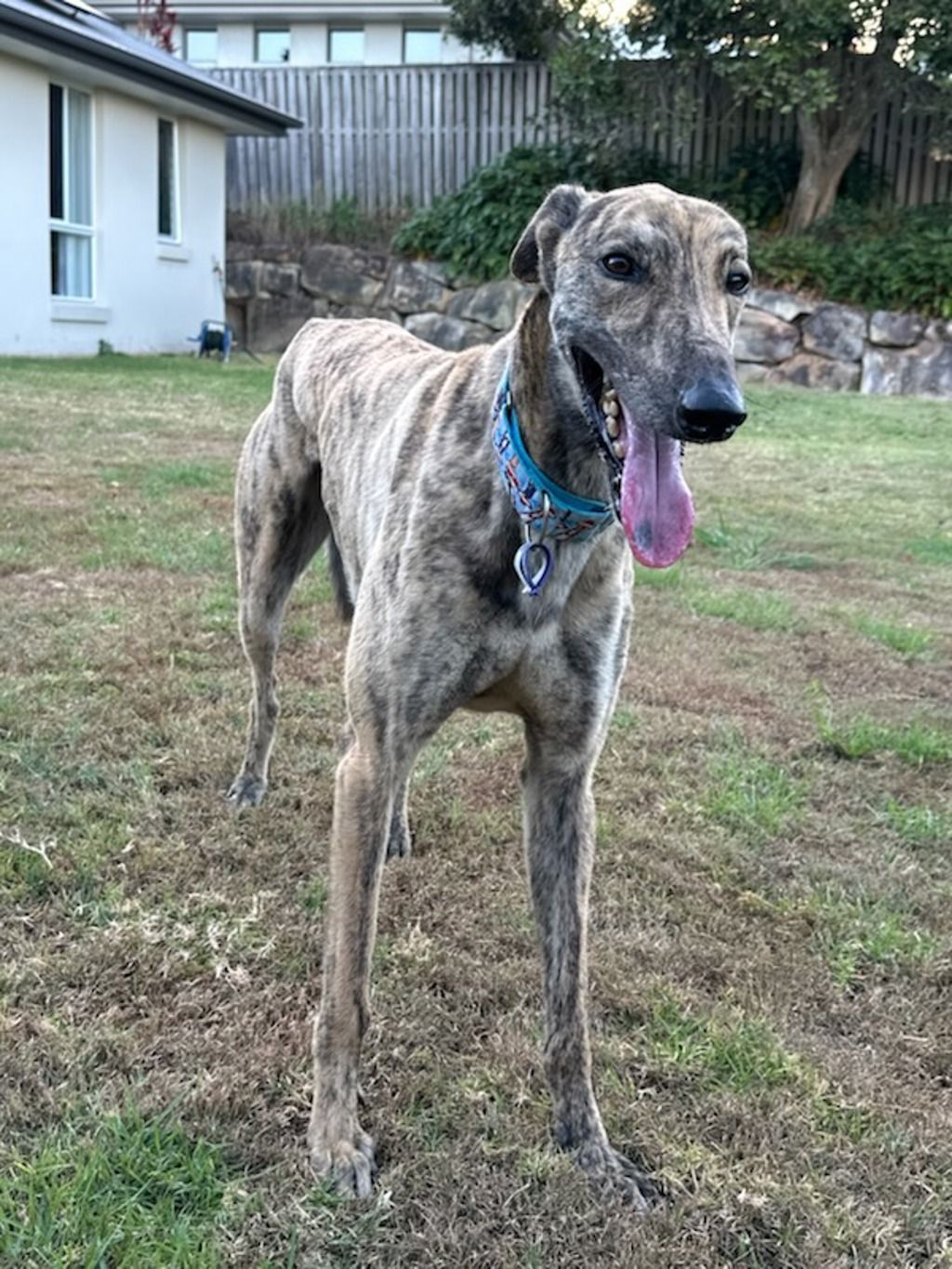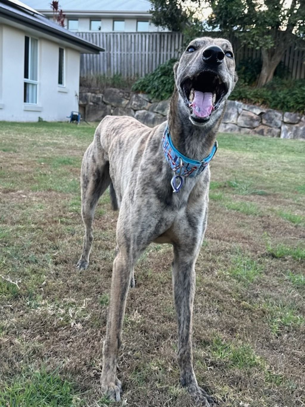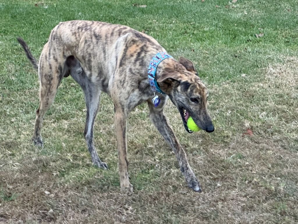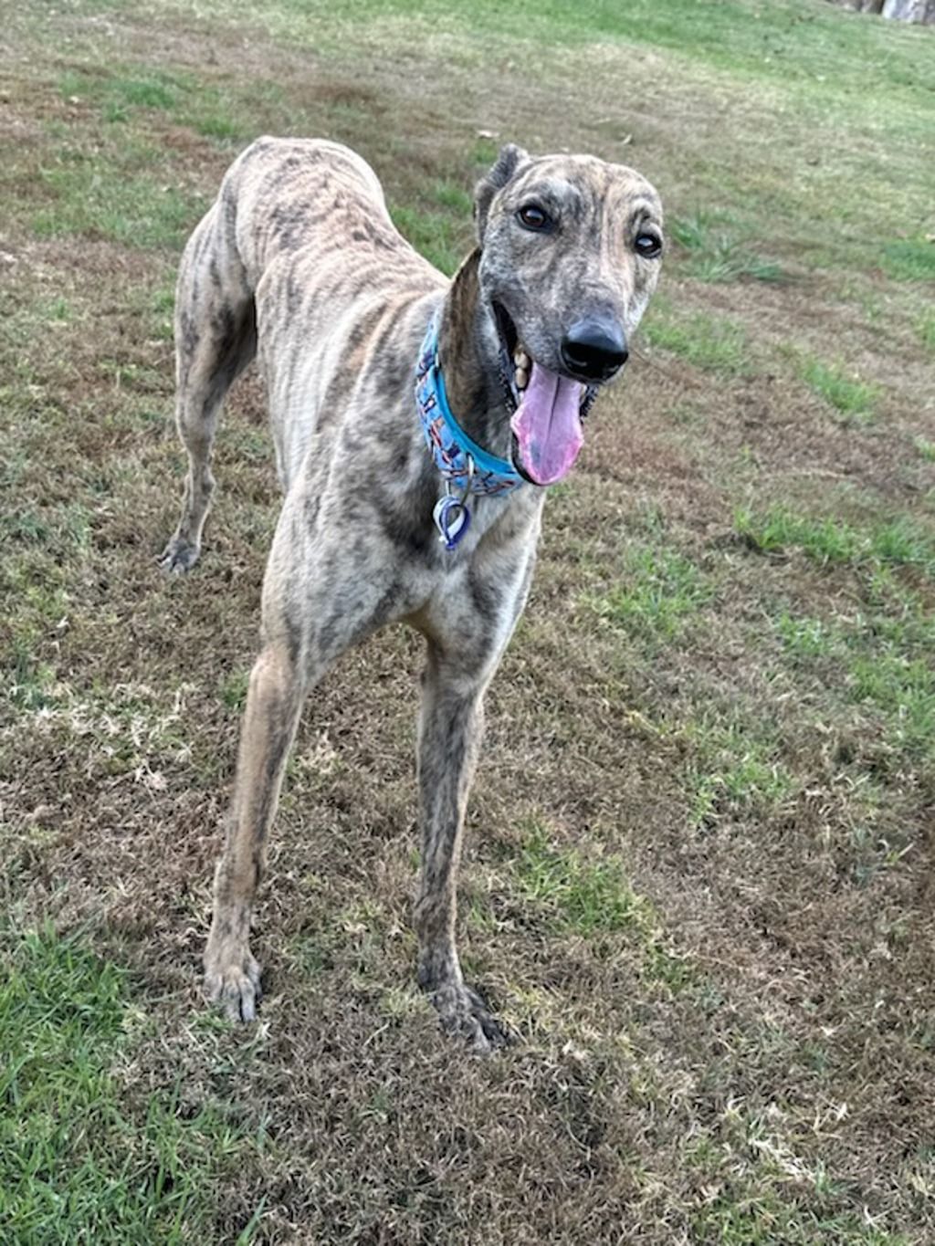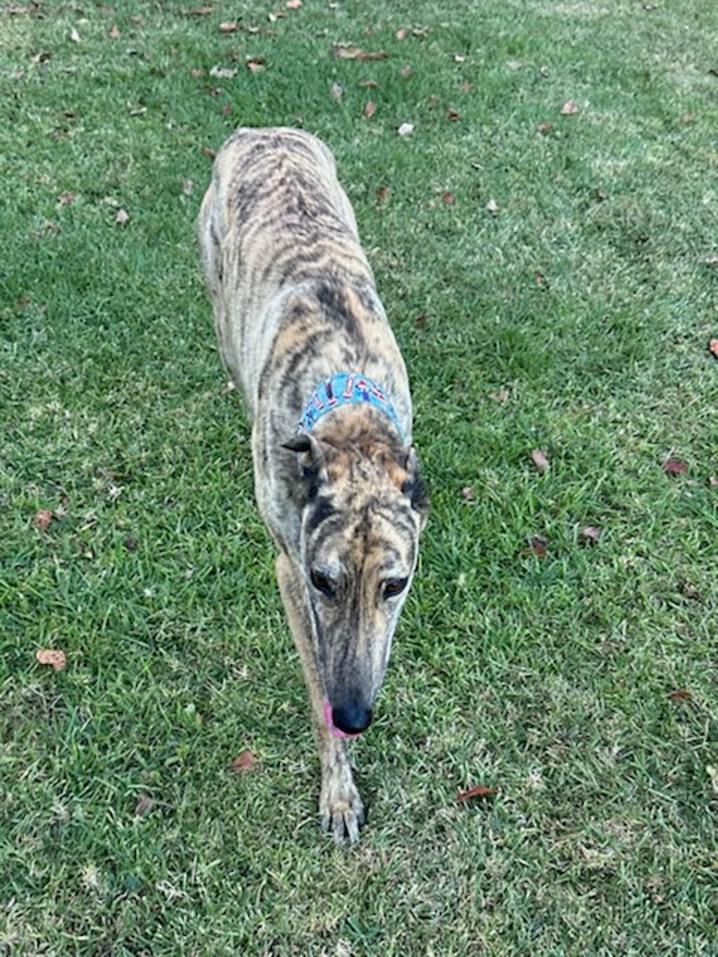 He’s looking for a home where he can be part of the family indoors, with a secure yard that’s big enough for a good zoomie or two before lounging the day away. Skippy would prefer a household without pocket pets, but he promises to fill your home with affection, loyalty, and plenty of greyhound charm.