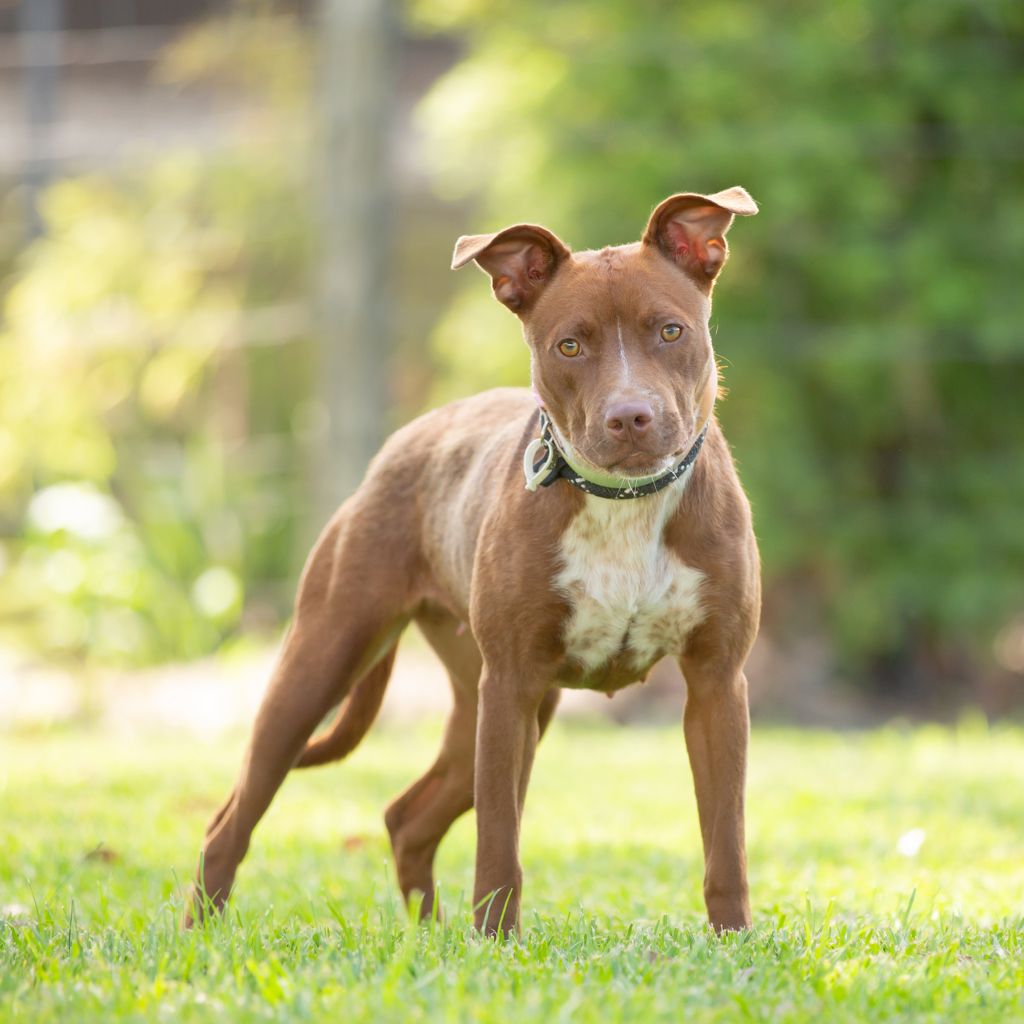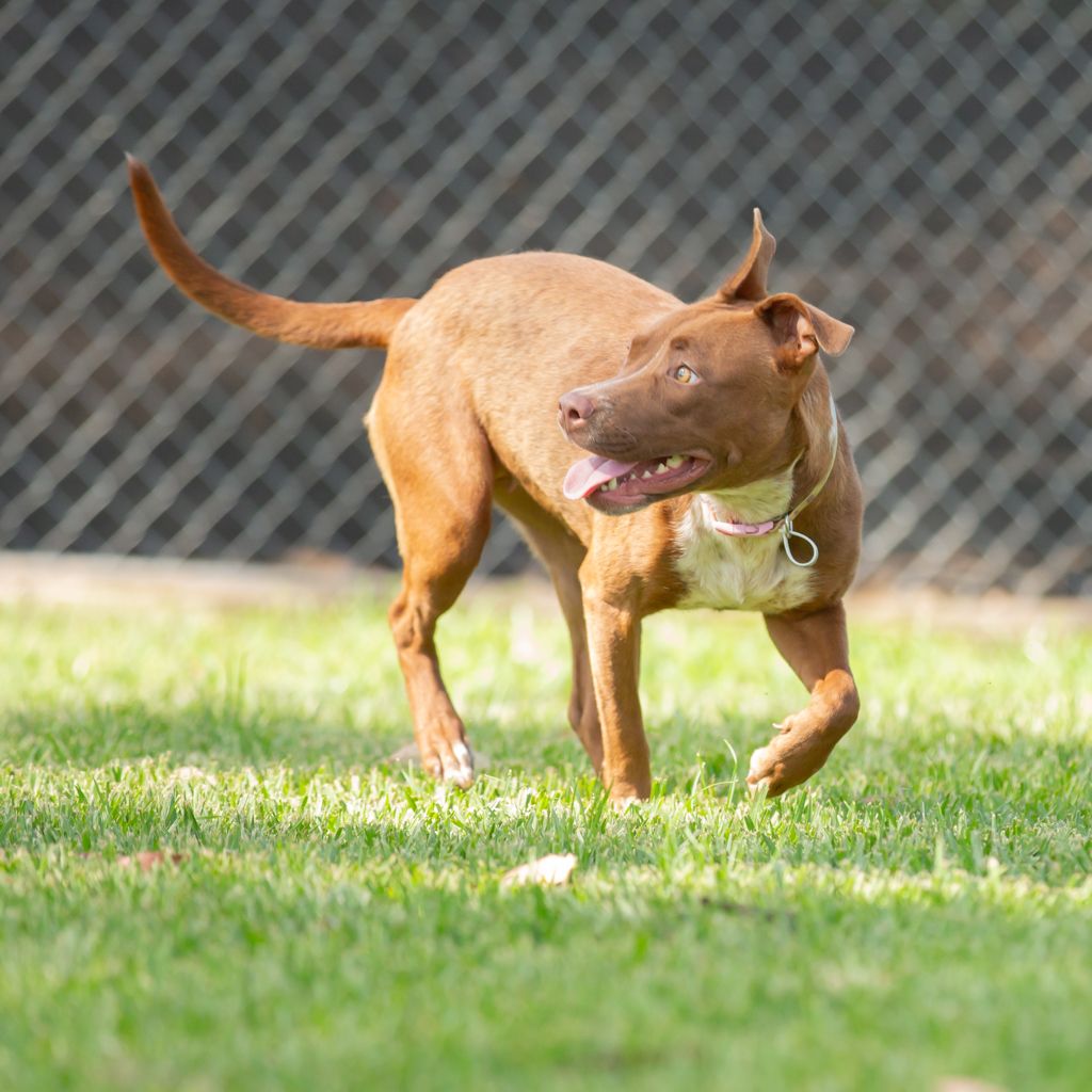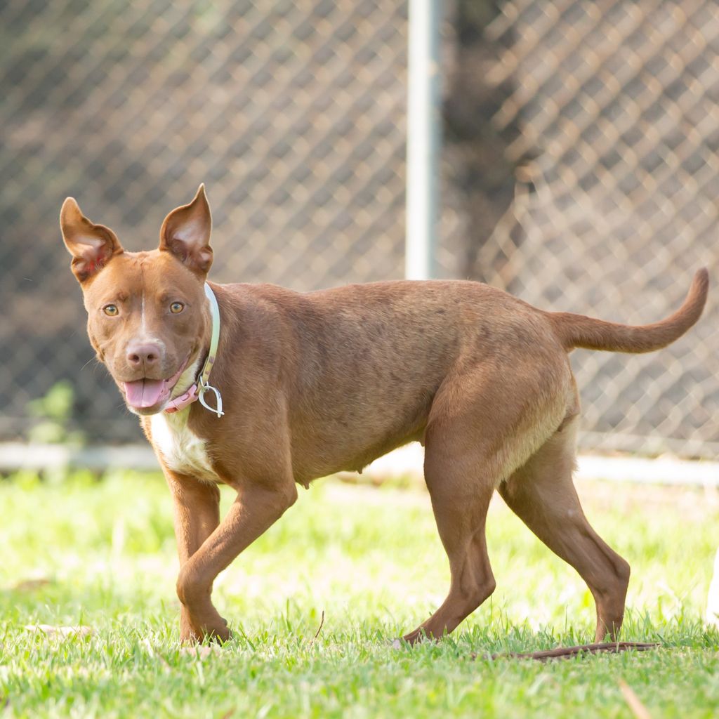 Cleo is a beautiful 10-month-old Staffy cross with a heart of gold and a personality to match. This sweet girl is full of love, affection, and happy vibes, and she absolutely adores spending time with her people.