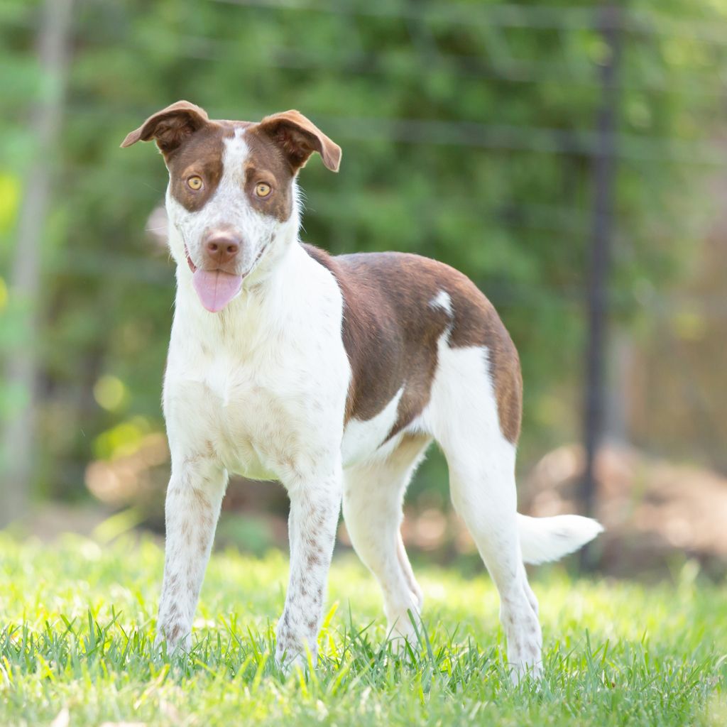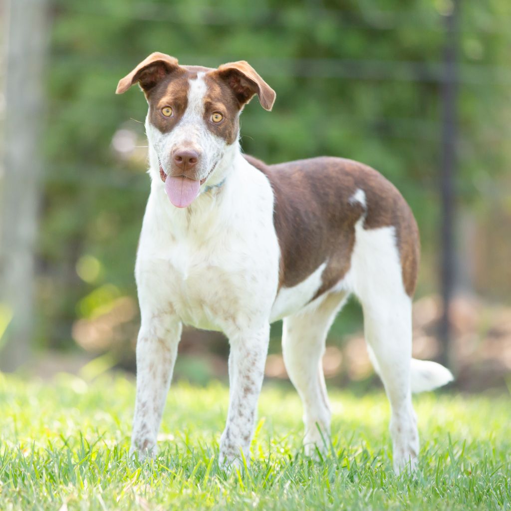 Coco enjoys playtime and would be a great match for a family who understands puppy energy. If she’s going home with another dog or children, meet and greets are recommended to ensure everyone is a good fit. Due to her size and enthusiasm, a securely fenced yard is essential so she can play and explore safely.