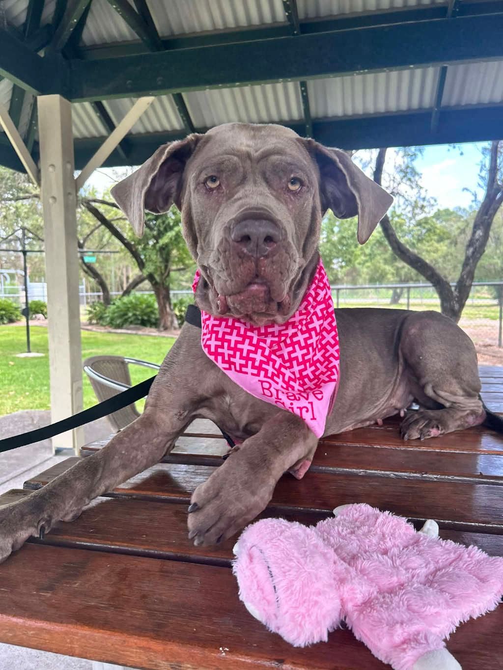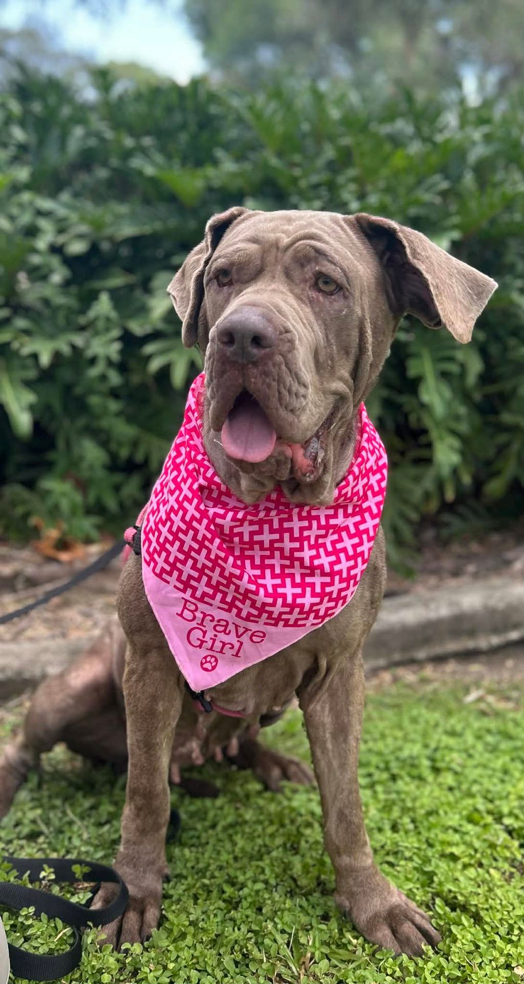 I’m a 6-year-old Neo Mastiff with a gentle soul, a powerful presence, and a heart as big as my paws. I’m a mature, affectionate girl who knows who she is and what she needs – a calm, confident home with people who understand large, strong breeds.