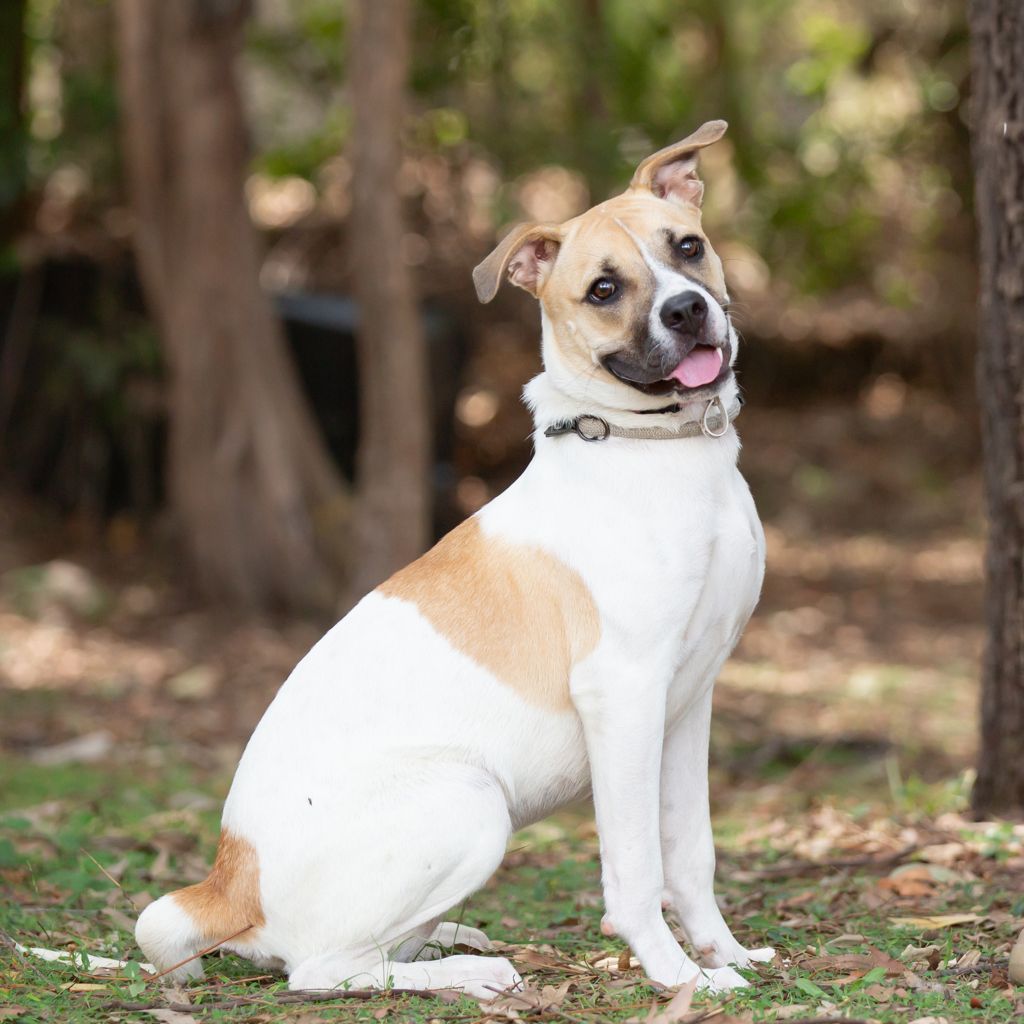 Lucy has that classic Staffy “smile”-a wide, tongue-out grin that appears the moment you walk through the door. Above all, her loyalty is unmatched; she will be your most devoted best friend from day one.
