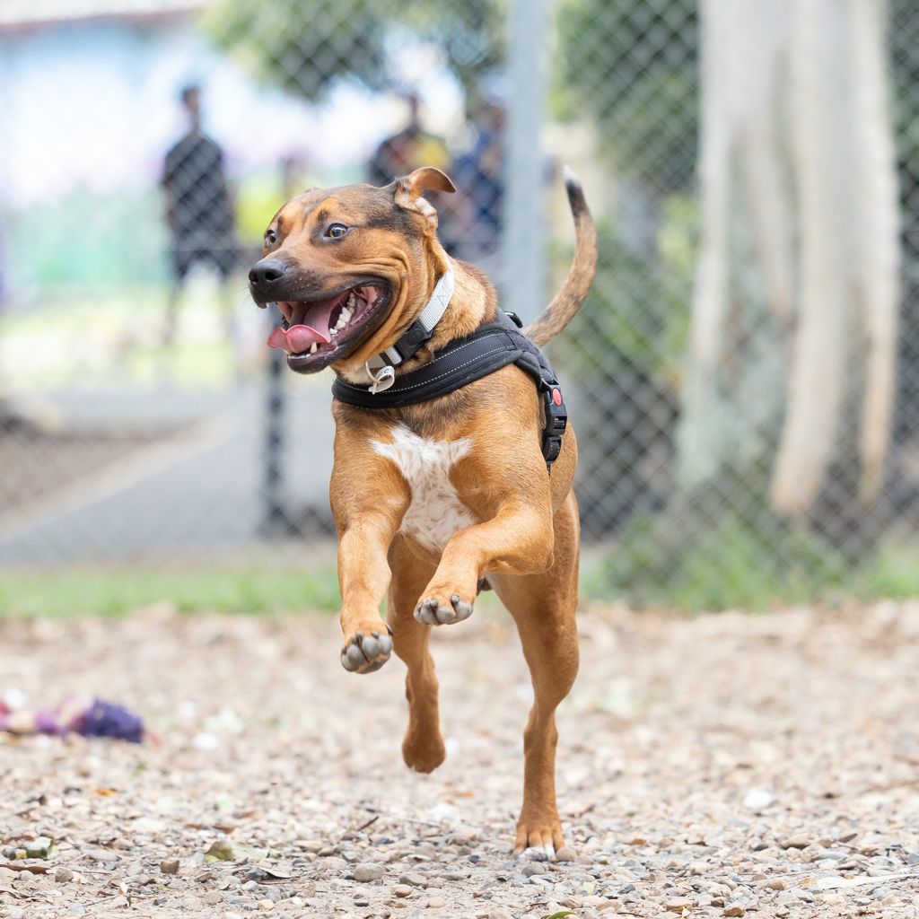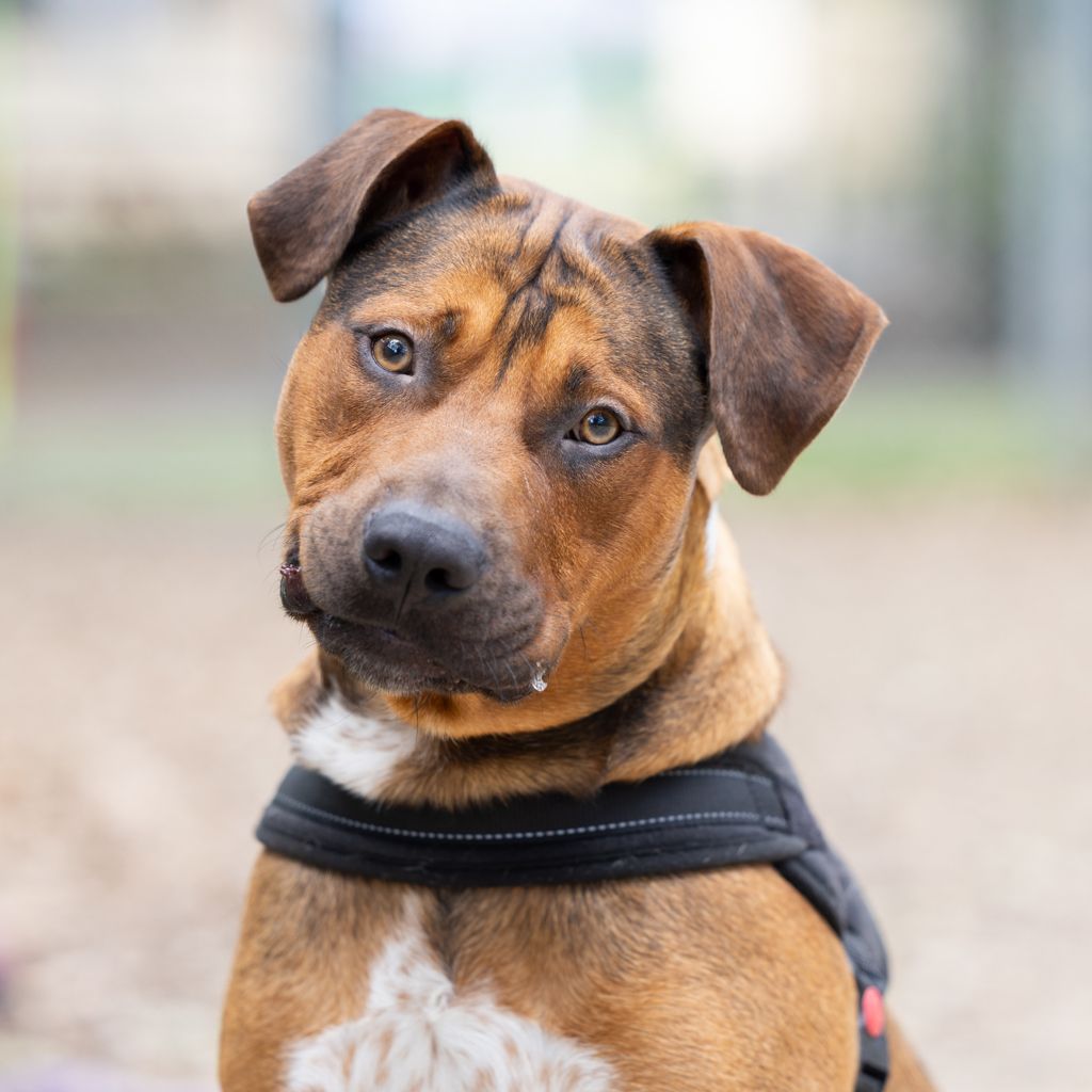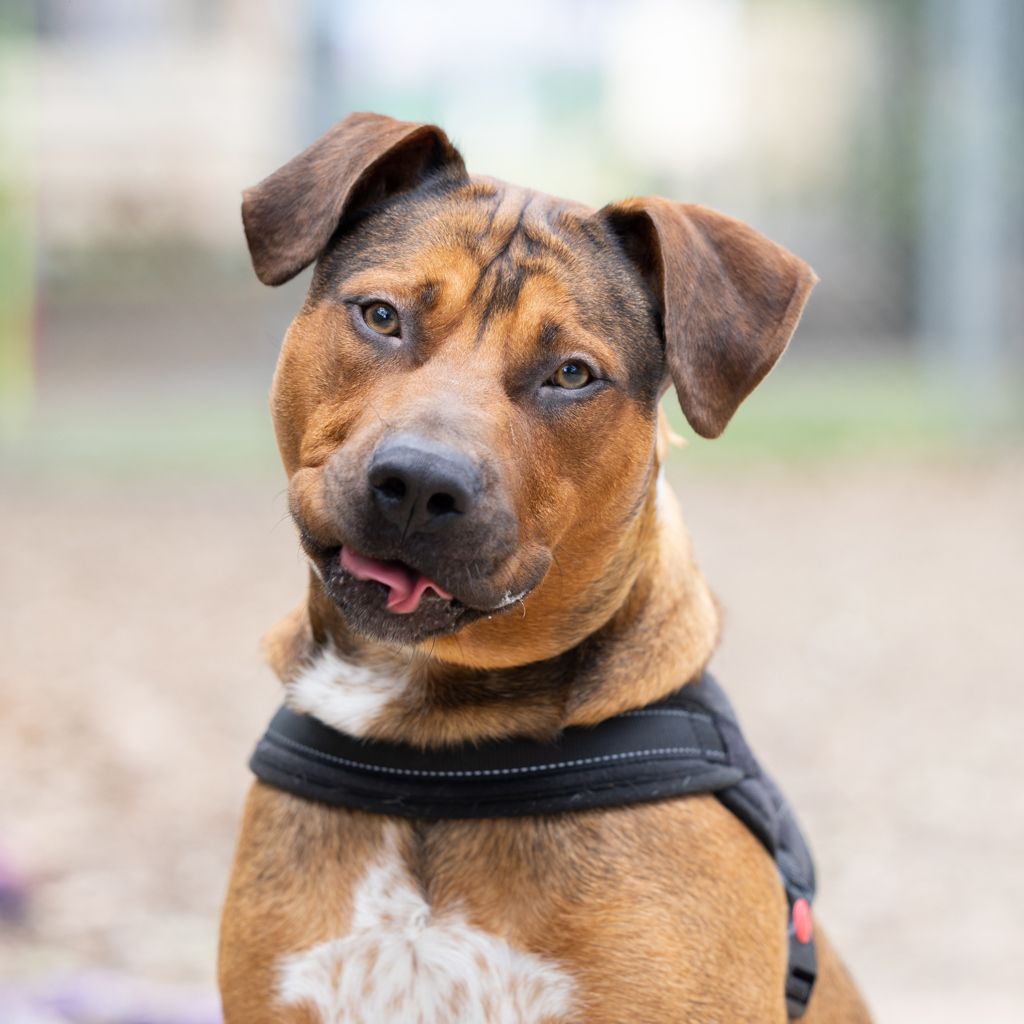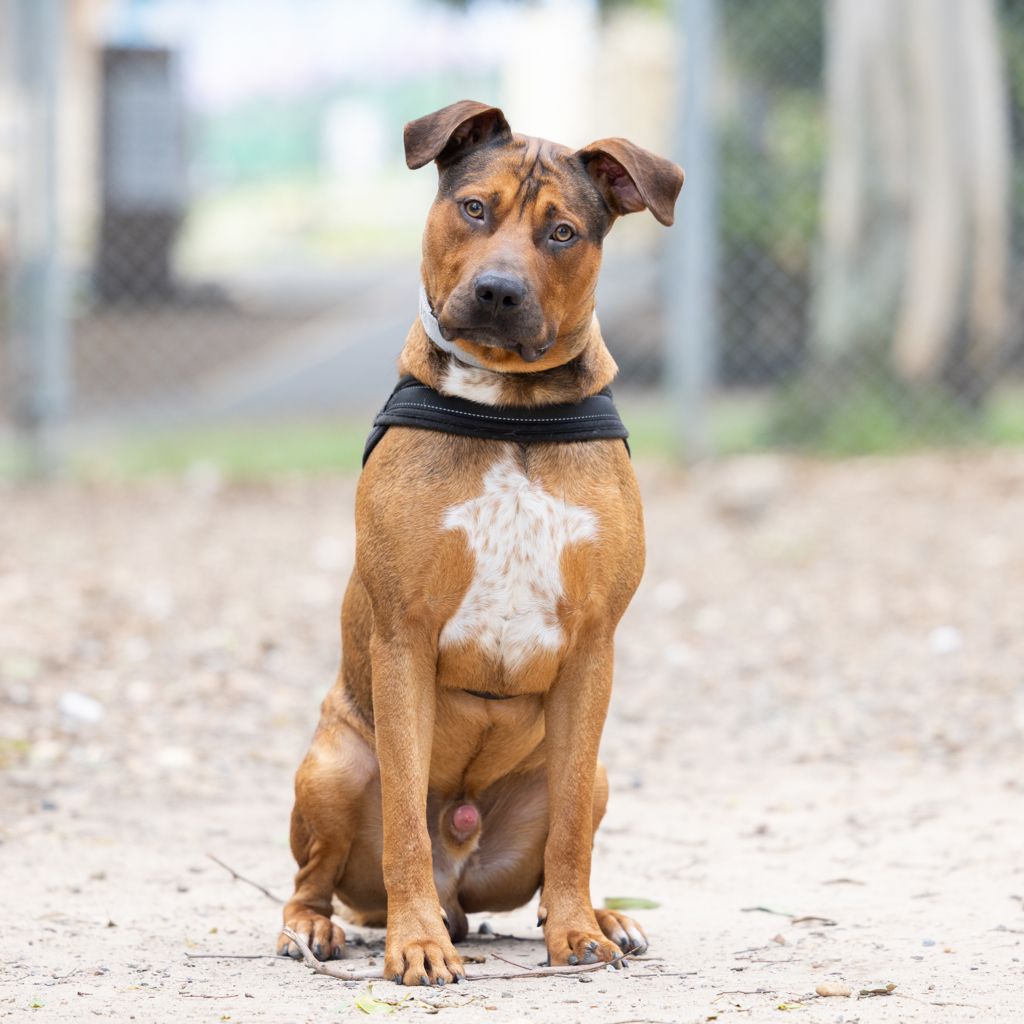 Bubby is a young American Staffy cross who is a big-hearted, boisterous bundle of joy! He adores everyone he meets and brings boundless energy and excitement wherever he goes. Playful and rambunctious, Bubby is still learning his manners and discovering that not everyone enjoys his energetic, rough-and-tumble style of play.