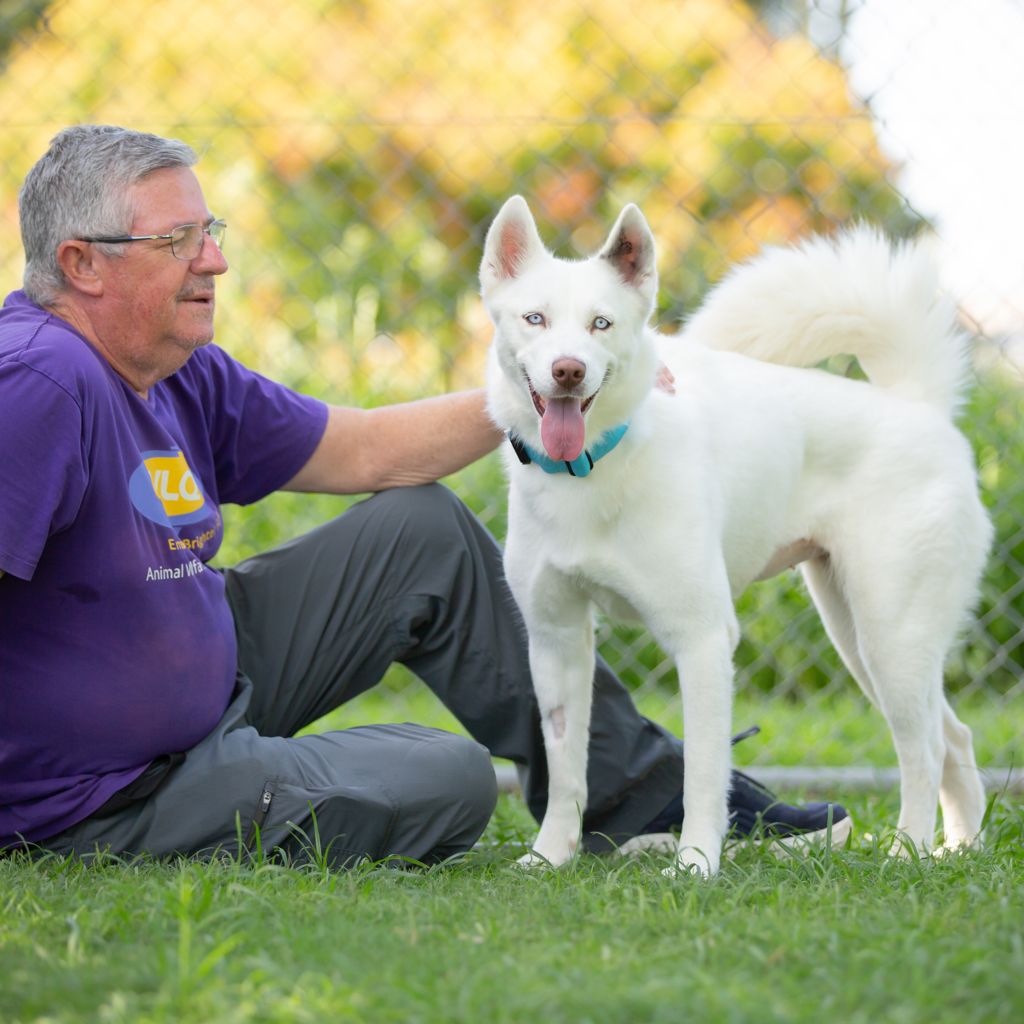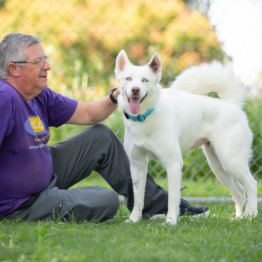 This stunning Husky girl is as bright and beautiful as her name suggests. With sparkling eyes full of mischief and curiosity, Celeste is always ready for her next big outing. Whether it’s hiking trails, beach runs, or backyard play sessions, she brings boundless energy and enthusiasm to everything she does.