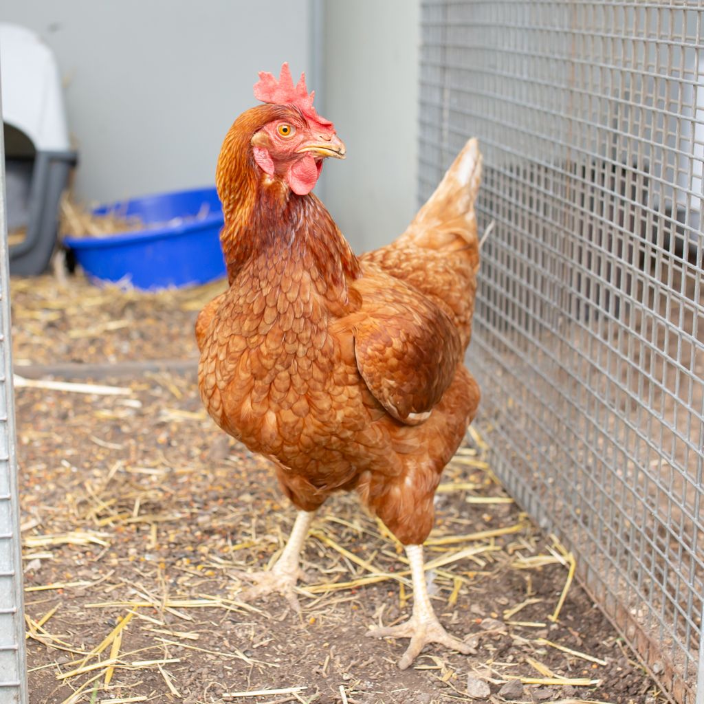 Meet Rue, a sweet and steady hen with a gentle spirit and a calm presence that brings harmony to any flock. Rue loves spending her days exploring the yard, dust bathing in her favorite sunny spots, and quietly observing the world around her. She’s an easygoing girl who gets along well with other hens and would thrive in a peaceful home with secure, predator-proof housing and plenty of space to roam and forage. With her soft nature and warm personality, Rue is perfect for an adopter who appreciates a quiet companion and enjoys watching the simple joys of chicken life unfold. Give Rue the safe, loving home she deserves, and she’ll reward you with companionship, charm, and plenty of heart.
