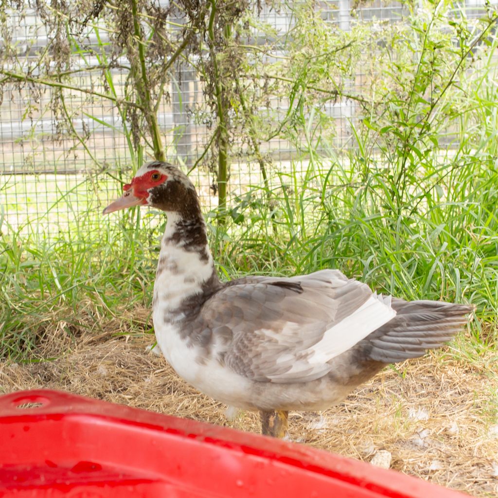 Misty is a calm and gentle female Muscovy duck looking for a loving forever home. She enjoys exploring, foraging in the grass, and spending time around water. Muscovy ducks are quieter than most duck breeds, and Misty has a sweet, relaxed nature.