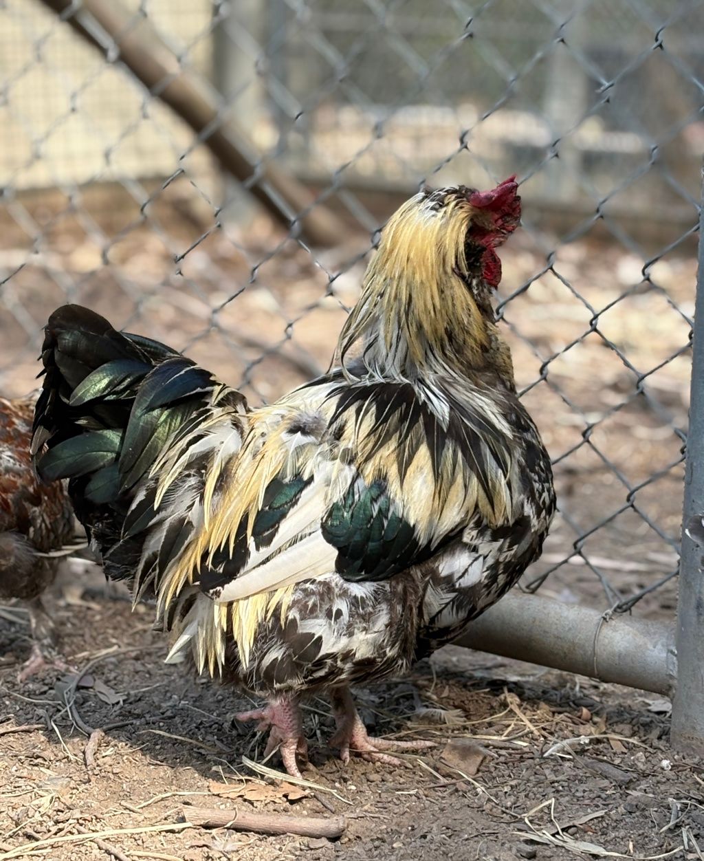 He’ll thrive in a secure, spacious home where his unique crest won’t hinder his safety, and where he can enjoy scratching, foraging, and showing off his impressive style. Cluckly would make a great addition to the right flock-or as a standout feature in a backyard setup for someone who appreciates a rooster with both character and charm.
