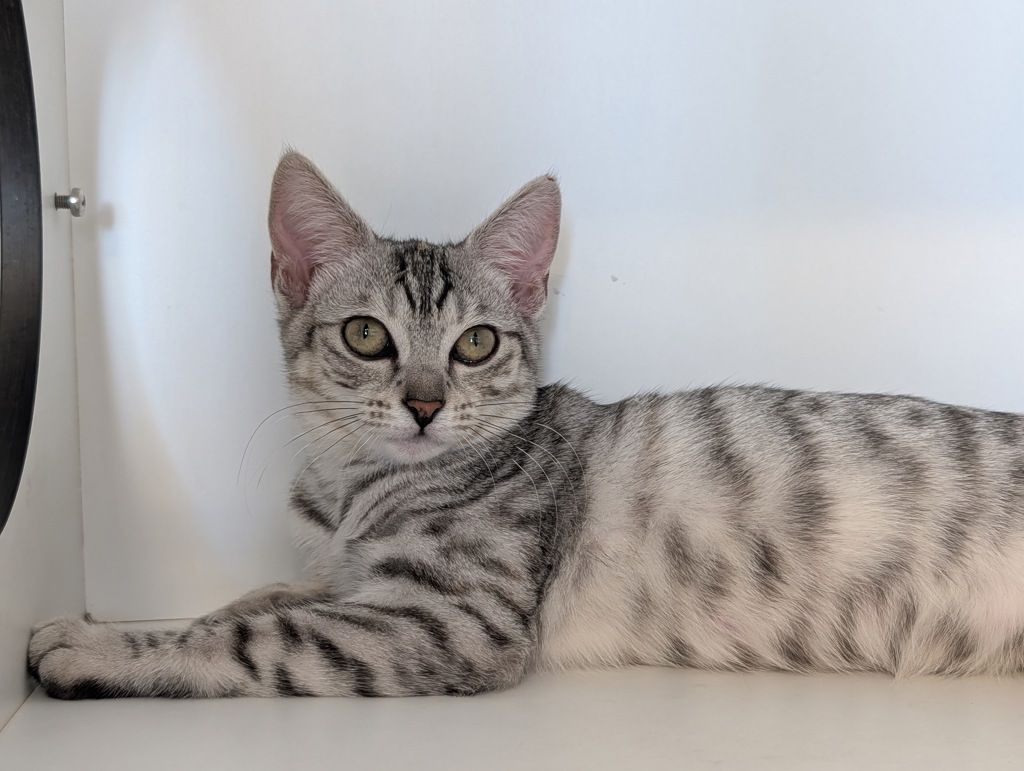 Harley is wonderfully social and loves quiet companionship. You’ll often find her curled up beside you for a cozy nap, offering soft slow-blinks, or keeping you company as you go about your day. She’s young, curious, and playful in the sweetest, most polite way – always ready for gentle games or soft toys to bat around.