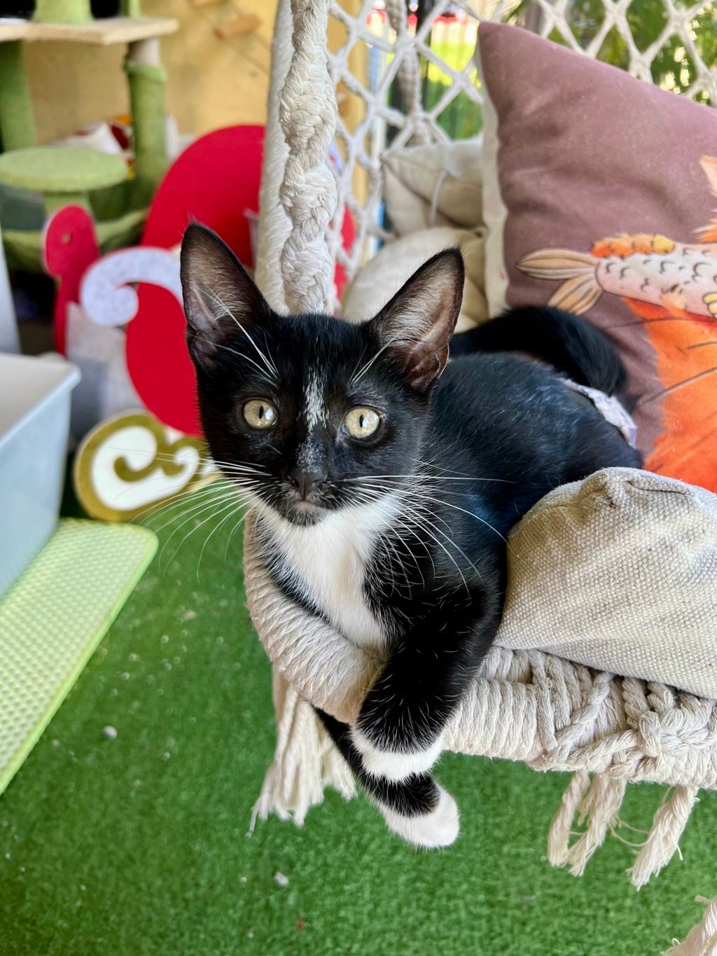 Three also loves playing with other cats. He’s friendly, curious, and enjoys having feline buddies to interact with, making him a wonderful addition to a home with other pets.