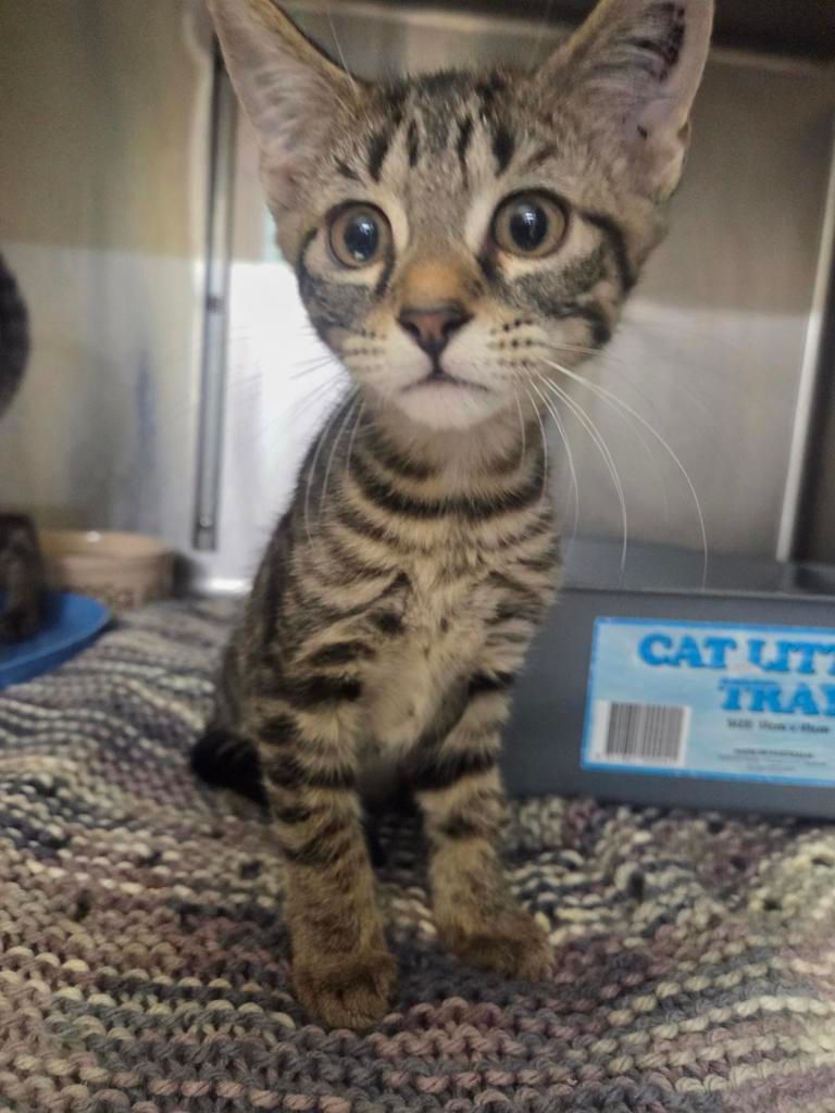 If you’re looking for a kitten with flavour, flair, and a side of sass, Taco is your guy! This adorable little tabby boy is the full fiesta package – outgoing, fun, and irresistibly cute. He’s the kind of kitten who salsas into a room like he owns the place and immediately wins hearts with his playful personality and cheeky charm.