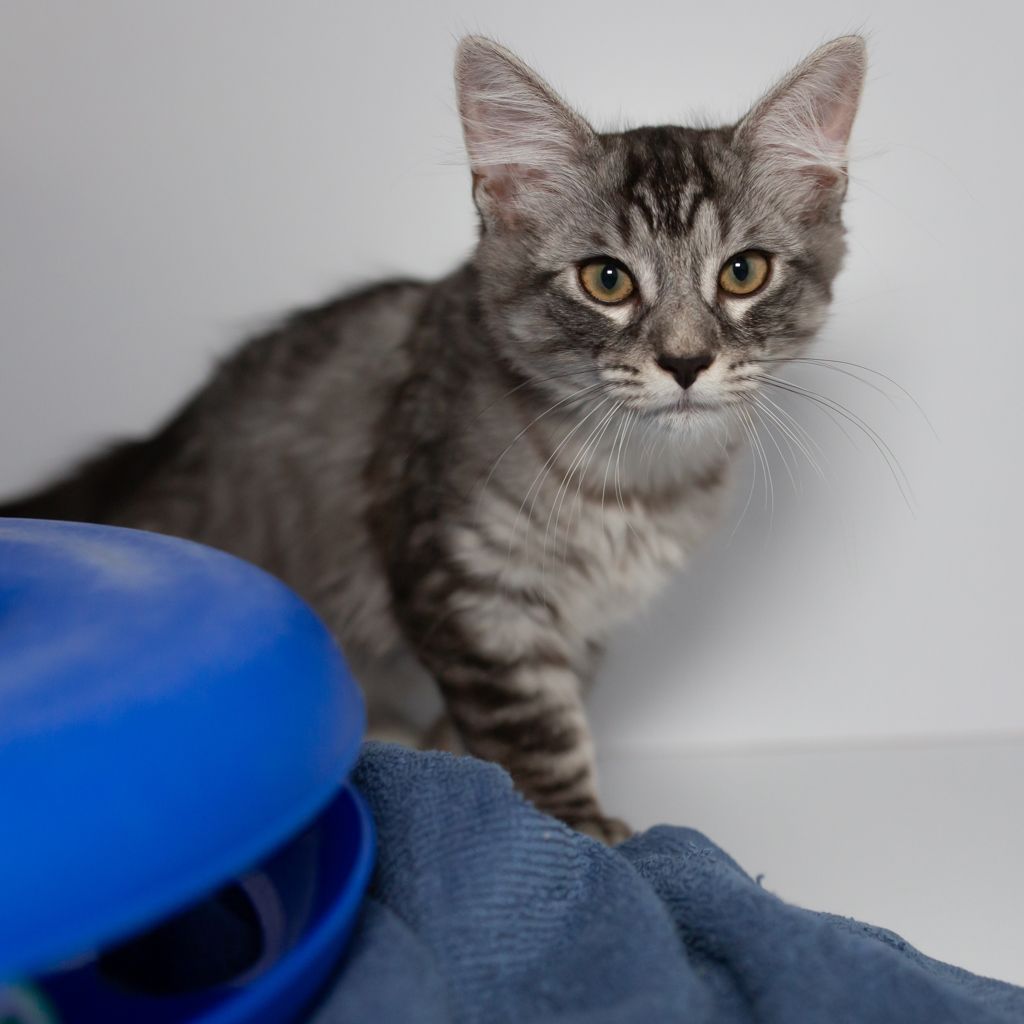 Leo is a gorgeous young kitten with a sunny personality to match his name. He’s playful, curious, and full of life, always keen to explore, chase toys, and make the most of his kitten energy. Leo loves being involved in whatever is happening around him and brings a sweet, happy vibe wherever he goes. When playtime is over, he enjoys slowing down for some gentle pats and quality time with his people. Leo is looking for a loving home where he can continue to learn how to be a good boy, he would not suit a home with young children right now as he does get rough when he is playing and can get overstimulated very easily, so experienced adopters and older children (or teens!) are best suited for his home life while he learns to be more gentle during playtime. If you are looking for a super active but very cute kitten, come check Leo out!