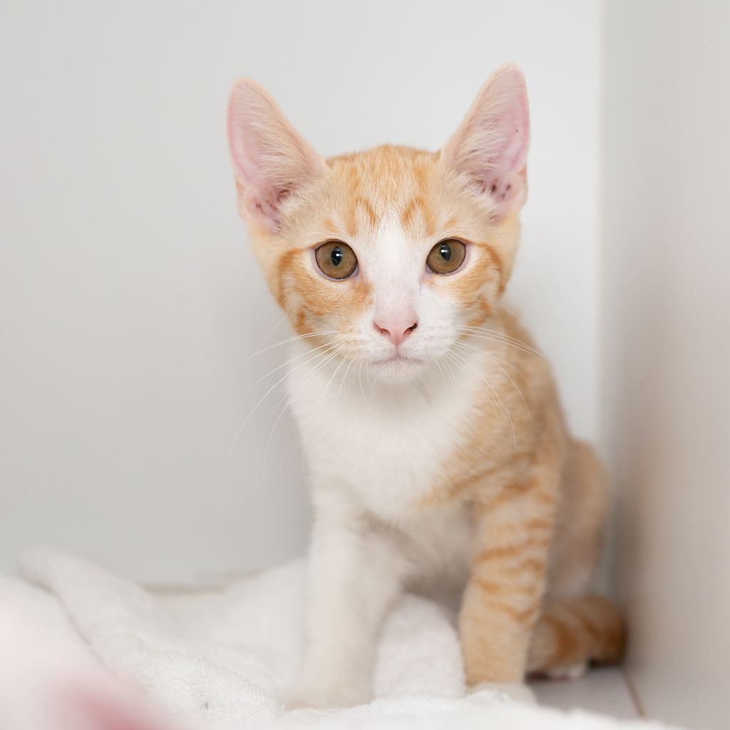 Meet Neo, a 12-week-old ginger and white tabby with a gentle soul and a curious little mind. Neo can be a bit nervous when meeting new people and prefers to take things slowly at first, watching from a safe distance while he figures out what’s going on. But don’t mistake his caution for disinterest – this kitten has an inquisitive nature and a quiet bravery that shines through as he gains confidence.