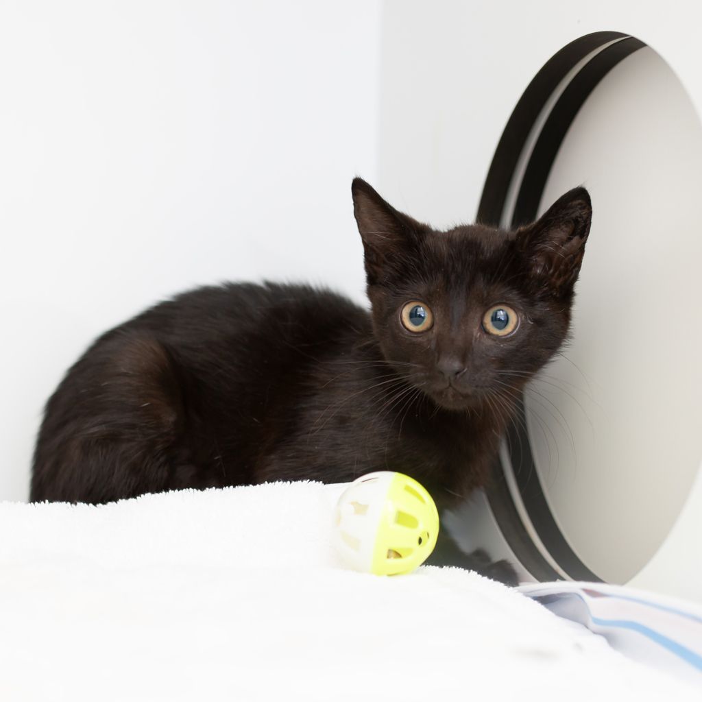 She would be best suited to a quiet home with someone who can spend time helping her build confidence. Ember may also enjoy the company of a friendly, confident cat who could help her feel more secure and show her that there’s nothing to be afraid of. With patience, love, and understanding, Ember will grow into a loving and rewarding companion.