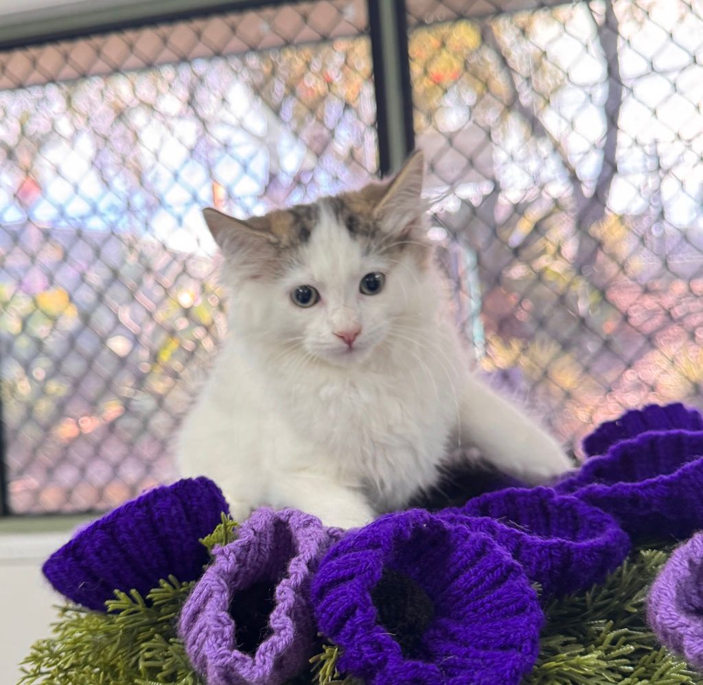 Hi, I’m Penny! I’m an 11-week-old sweetheart with a gentle, loving nature. I might be a little timid at first but give me some time and I’ll blossom into the biggest cuddle bug. I love quiet moments, soft pats, and staying close to my people, with just the right amount of playful energy. I can live with other cats and gentle, cat-friendly dogs. I just want a loving home to call my own!