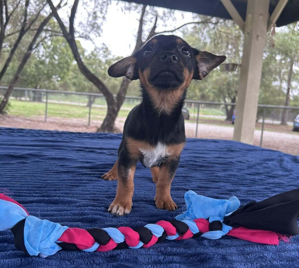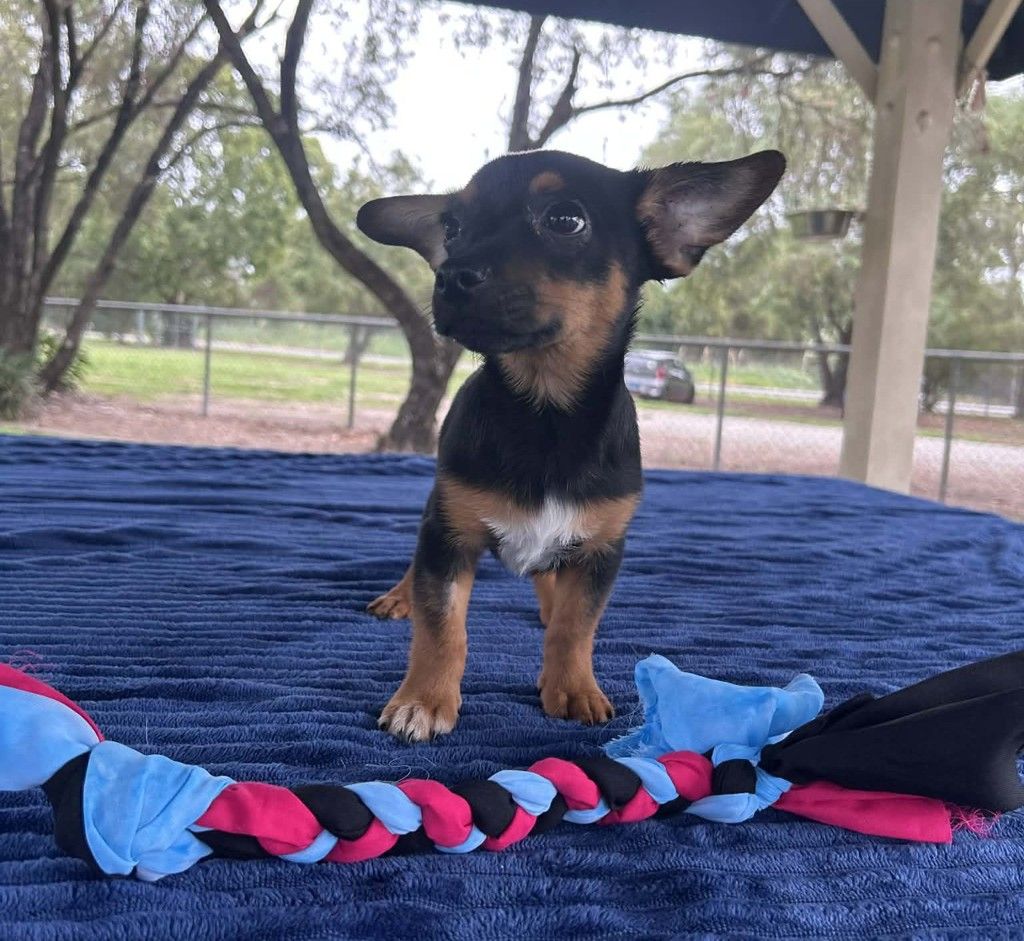 Emerson is a 10-week-old male Chihuahua with a gentle heart and a quiet, thoughtful nature. He can be a little shy when meeting new people or exploring unfamiliar places, but once he feels safe, his sweet personality begins to shine through.