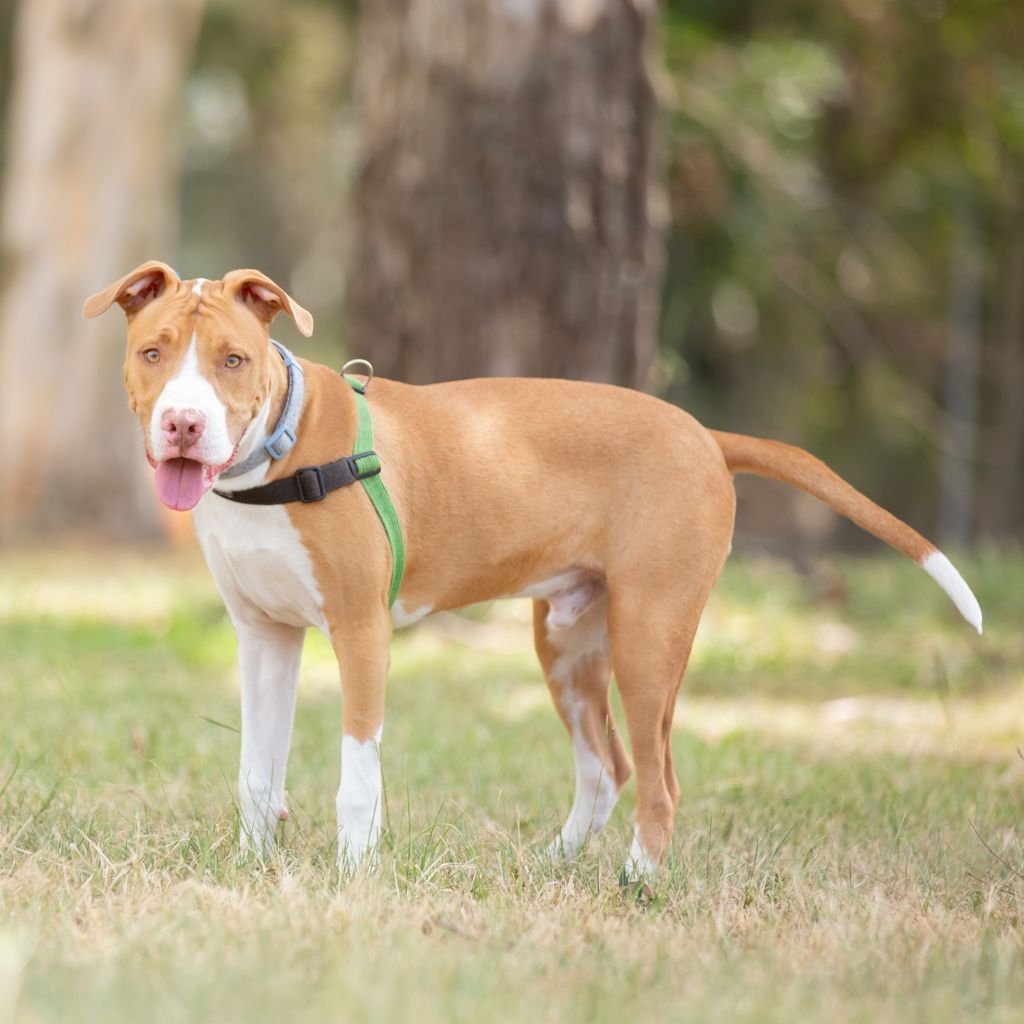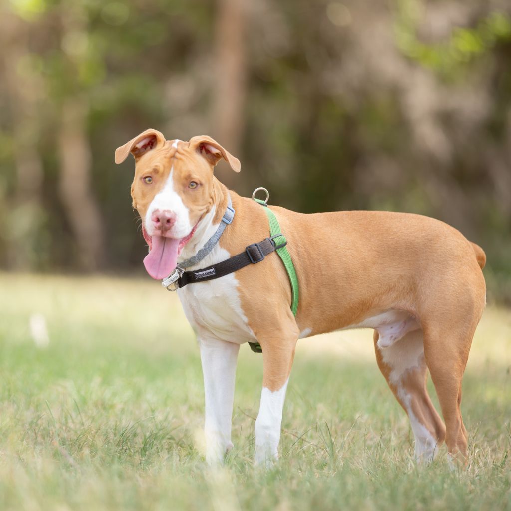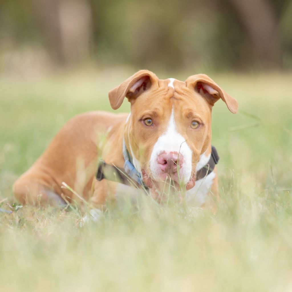 I’m a 5-month-old male American Staffy with a whole lot of puppy energy and enthusiasm packed into me! I’m bright, bouncy, and still very much learning how to move through the world with all four paws on the ground π