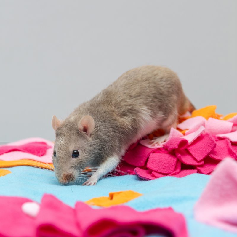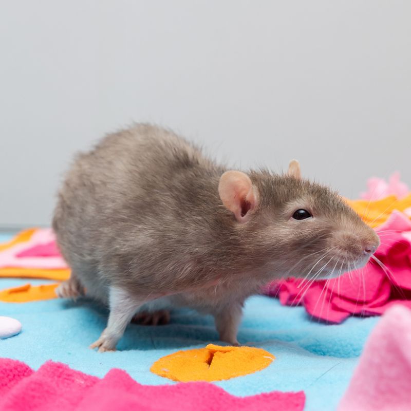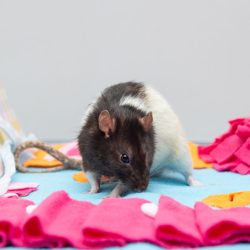 Rowan has a prior foot injury but is currently doing great and getting around like a normal rat