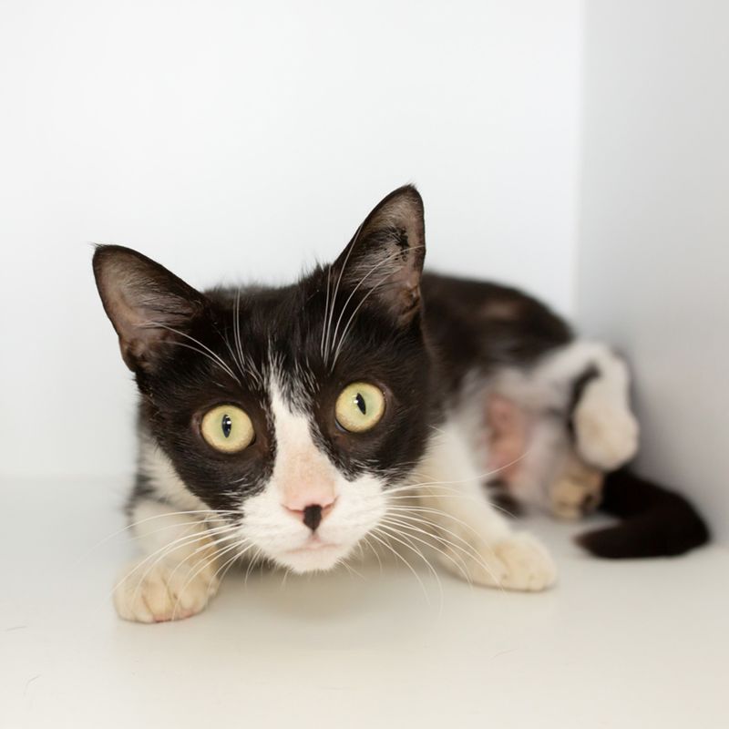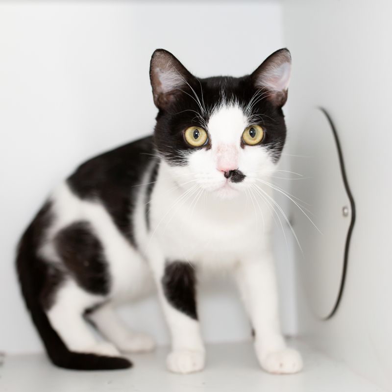 Say hello to Speckle, a charming 1.5-year-old black-and-white gentleman with a coat that looks like it was sprinkled with kitty confetti. Big, sturdy, and full of personality, Speckle is ready to bring a dash of joy to the right home.